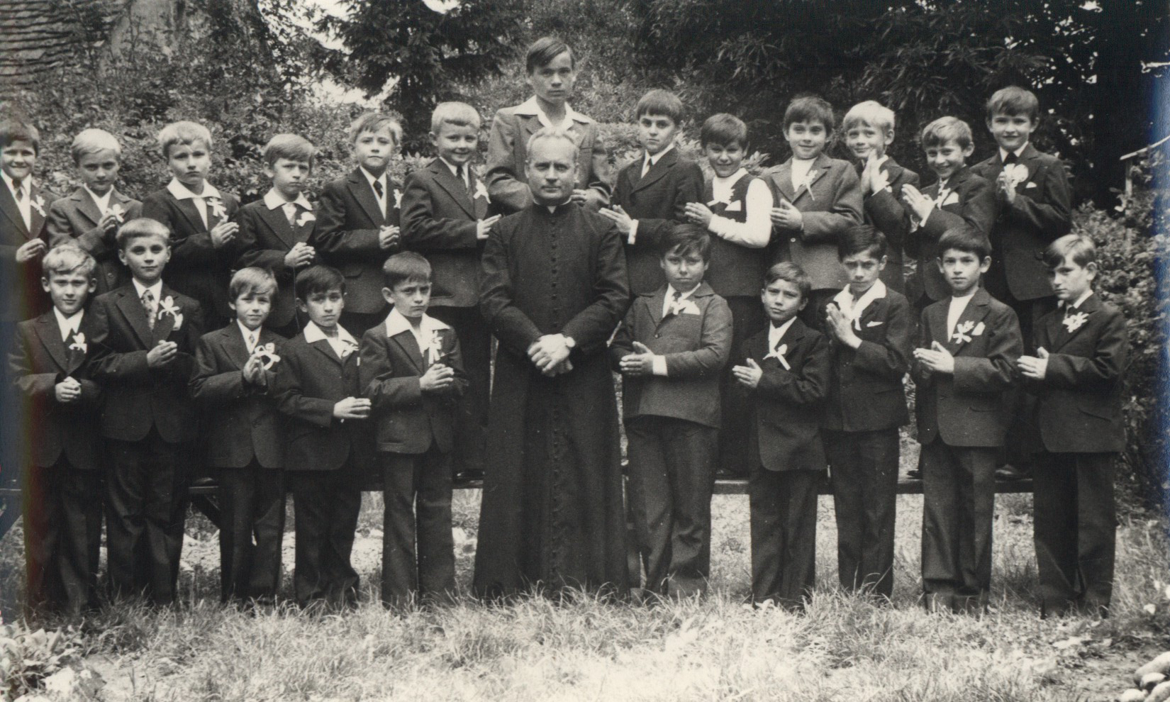 Nyilvános 1593 | 4051 | A régi iskola 1976-ban. A középen látható pap családi neve: Tihanyi. Személyek: | Hátsó sor balról jobbra: 1. ismeretlen 2. Pfeifer István 3-5. ismeretlen 6. Zsovár László 7. Dudli József 8. ismeretlen 9. Horváth László 10. Marton László 11. Csöndör László 12-13. ismeretlen Első sor balról jobbra: 1. Gulyás Ervin 2-3. ismeretlen 4. Baranyai László 5. Tömöri Ferenc 6. pap 7. Bognár József 8. ismeretlen 9. Tolnai Jenő 10-11. ismeretlen. |