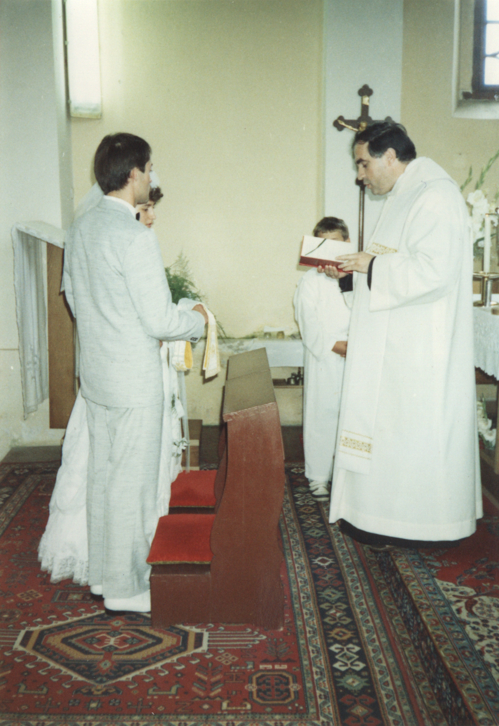 Esküvő a templomban. Pánczél Károly és Horváth Annamária.