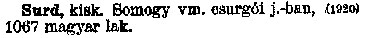 Surd kisk. Somogy vm. csurgói j. -ban, (1920) 1067 magyar ... | 14.95 KB | 2008-03-12 11:47:51 | |||