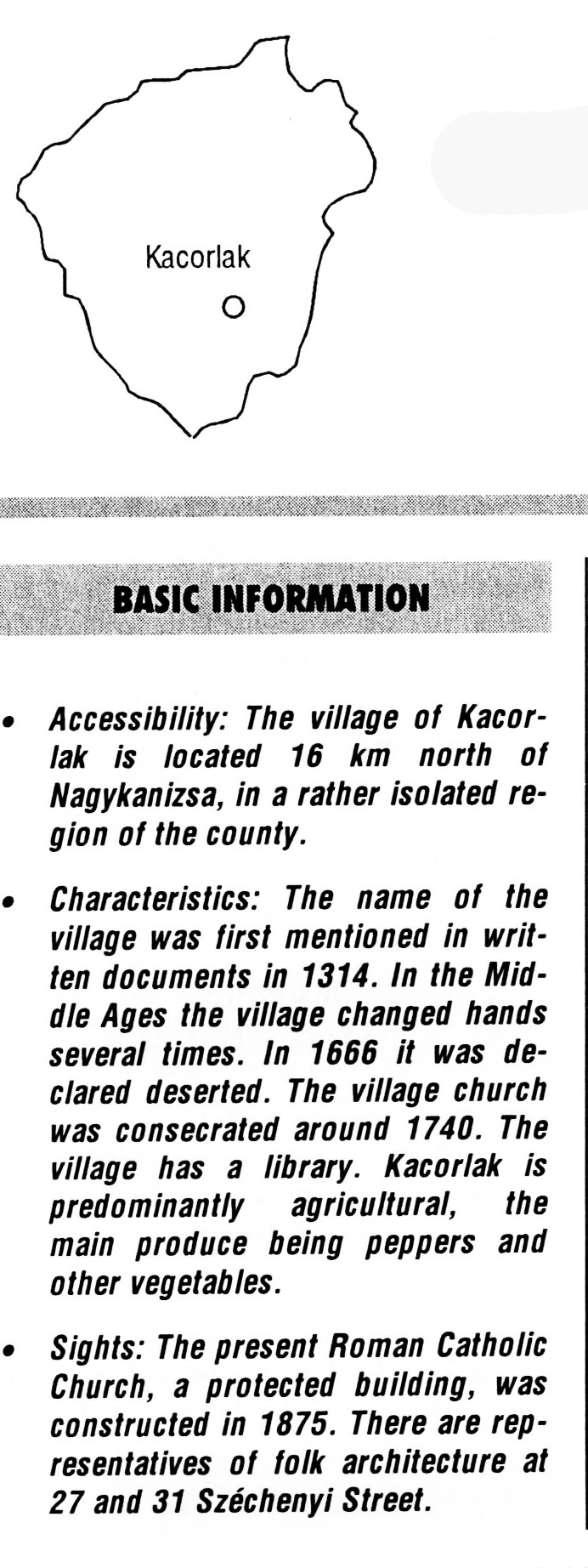 Kacorlak BASIC INFORMATION Accessibility: The village of  ...
