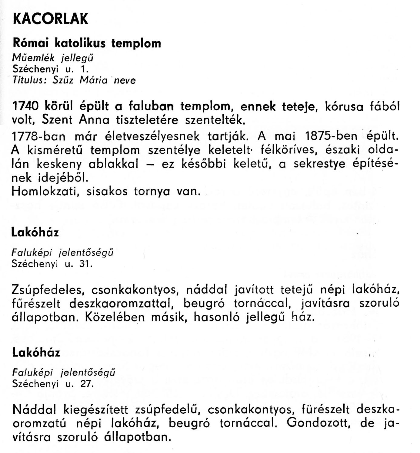 Kacorlak - Magyarország műemlékjegyzéke - Zala megye 200 ...