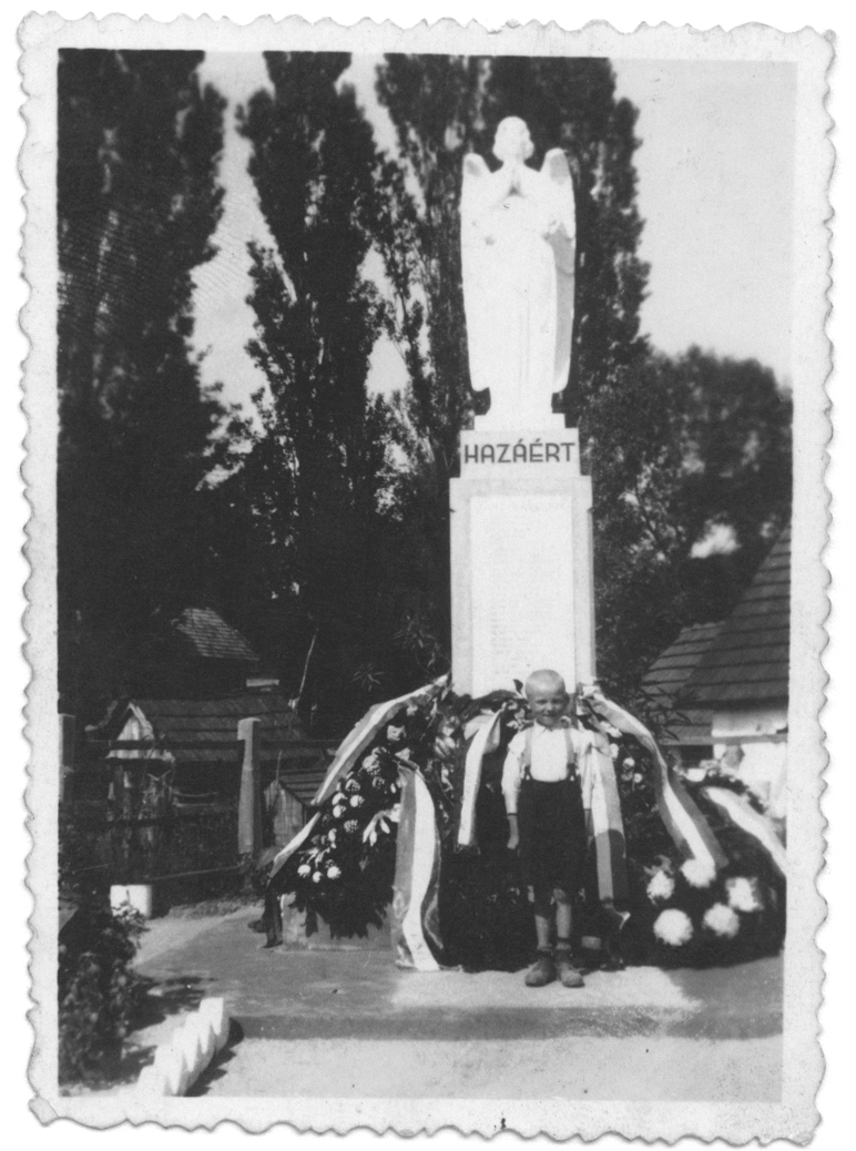 1941. A Hazáért emlékmű avatása. A szobor előtt Antal Árpád áll.