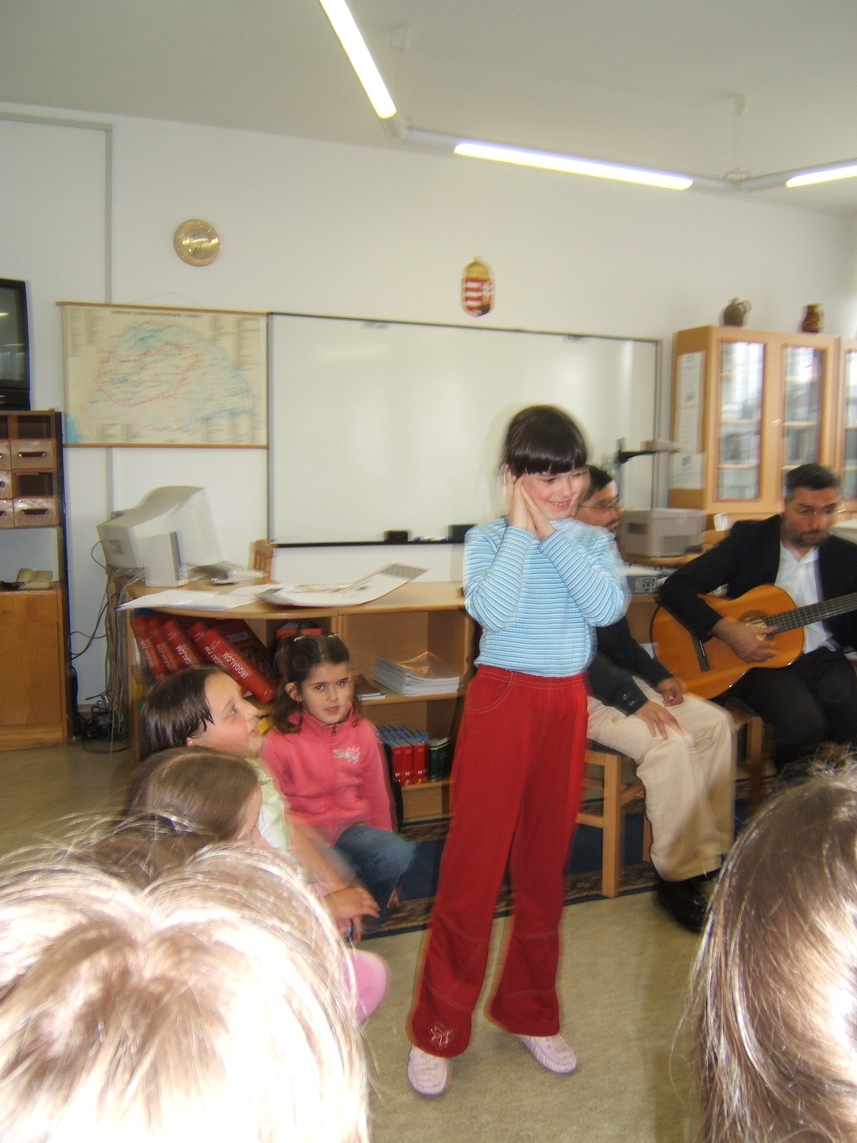 Nyilvános 1406 | 3262 | Költészet napja műsor a zalakarosi könyvtárban 2006. április 11-én. Vendégünk volt a Kardos Banda együttes, aki a kisiskolásoknak és a nagyoknak külön összeálított \"Költészet - minden formában régiektől, maiaktól\" című műsorát adta elő. | |