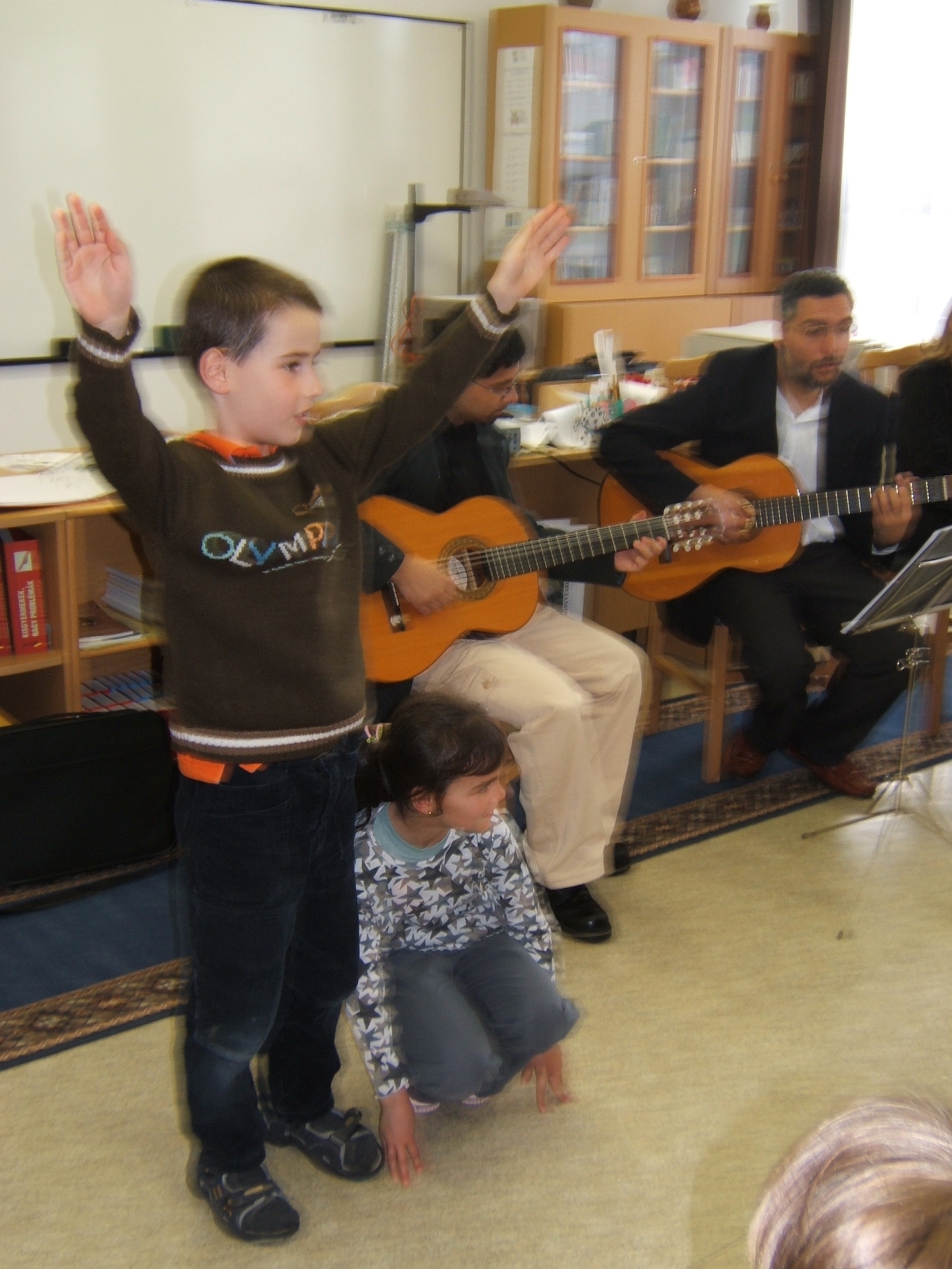 Nyilvános 1355 | 3139 | Költészet napja műsor a zalakarosi könyvtárban 2006. április 11-én. Vendégünk volt a Kardos Banda együttes, aki a kisiskolásoknak és a nagyoknak külön összeálított \"Költészet - minden formában régiektől, maiaktól\" című műsorát adta elő. | |