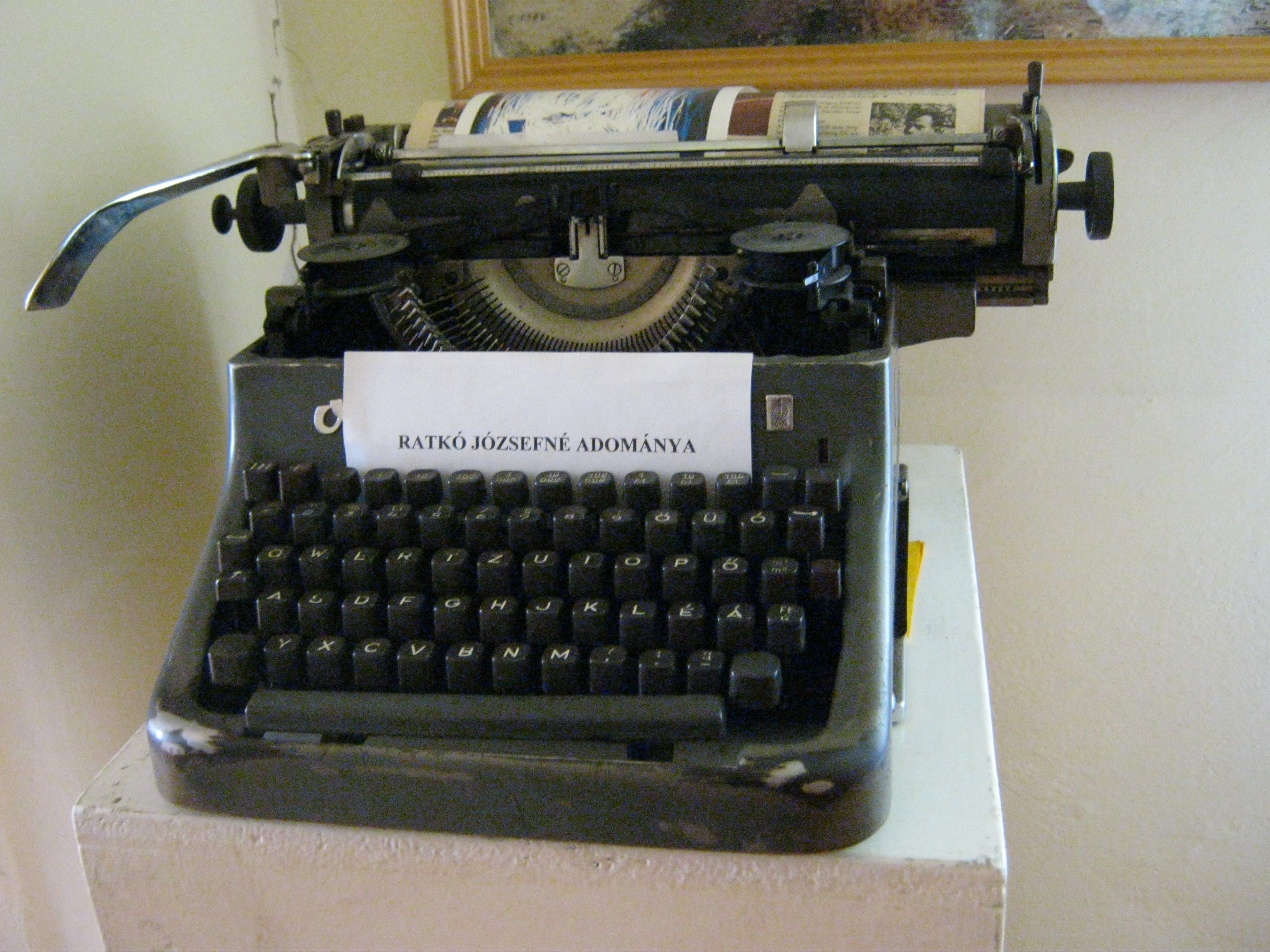 Nyilvános 911 | 1350 | Nagykálló, Szabadság tér 6. | Az 1700-as évek vége felé épült klasszicista eredetű épület Korányi Frigyes szülőháza. A magyar orvostörténet nagy alakja itt látta meg a napvilágot 1828. december 10-én. Édesapja, Kornfeld Sebald tehetős izraelita orvos volt. Szülőháza 1971 óta emlékházként működik eredeti bútorokkal, relikviákkal s más, Kálló életéhez kapcsolódó tárgyakkal. A képen Ratkó József költő írógépe látható. Ratkó rövid nyíregyházi működés után 1964-ben a nagykállói városi könyvtár igazgatója lett. Nagykállón hunyt el 1989-ben, a városi temetőkertben nyugszik. Felh. irod.: Harsányi Gézáné: Kálló kincsei. Nagykálló, 2007 |