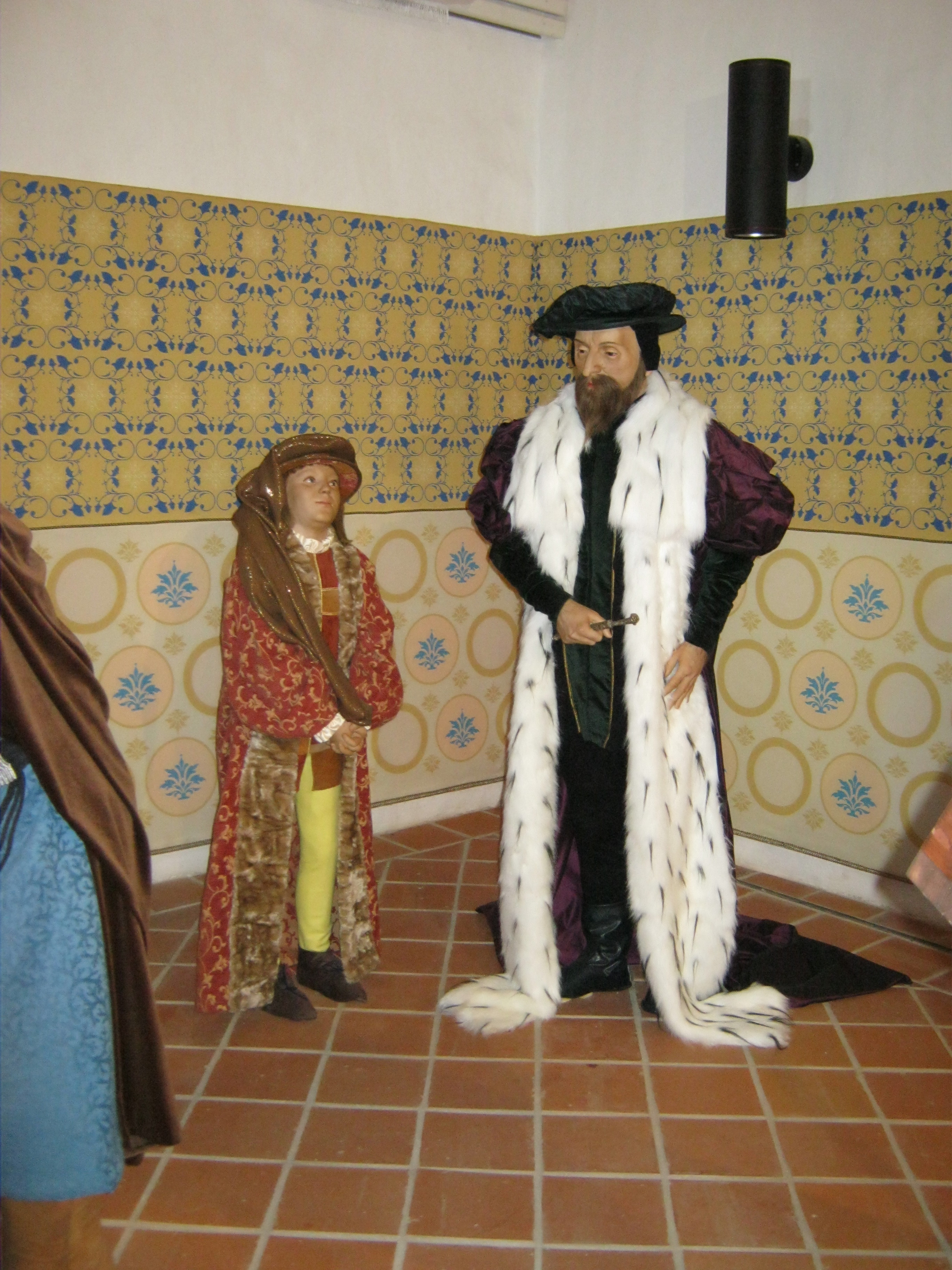Nyilvános 889 | 1297 | Nyírbátor, Vár utca 1. Báthori várkastély | A Báthoriak várkastélyának többször átalakított egyetlen megmaradt épületét a közelmúltban állították helyre. Pincéjében reneszánsz étterem látogatható, földszintjén és emeletén a Báthori Panoptikum 45 élethű és korhű viaszfigurában mutatja be érzékletesen a jeles nemesi család és Nyírbátor történetét. A figurák tervezője és készítője Megyeri János szobrászművész. A megtekintést olvasható és hallgatható kalauzolás kíséri. A kiállítást a kenyérmezei csata 530. évfordulóján, 2009.október 13-án adták át. Az 1479-ben a törökkel vívott csata egyik hőse Báthori István volt. A képen a kis János Zsigmond és I. Ferdinánd király figurái. Felh. irod.: Látnivalók Szabolcs-Szatmár-Bereg megyében. Miskolc, Well-PRess, 1999 www.bathorivarkastely.hu A fénykép 2010 augusztus elején készült. |