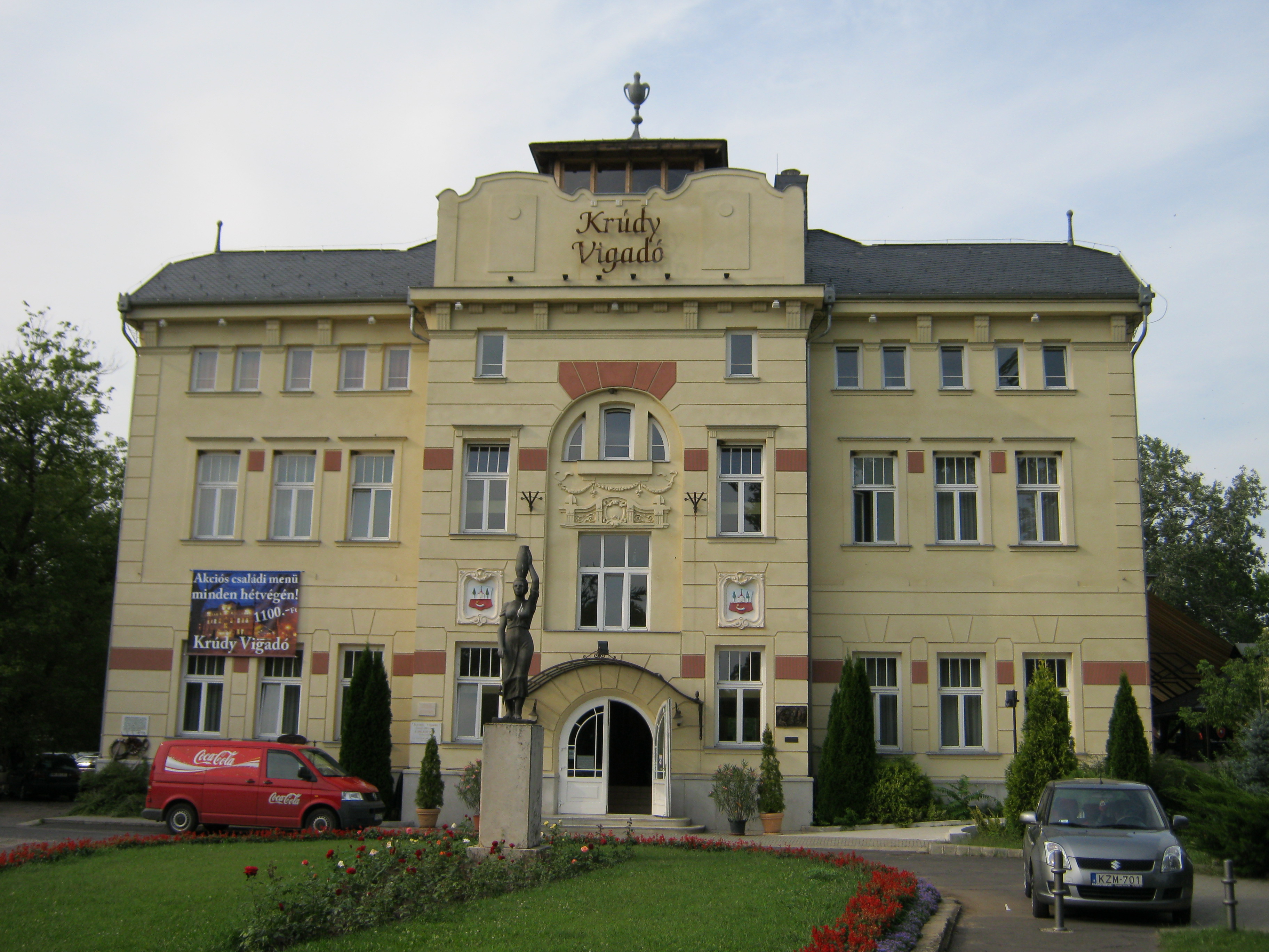 Nyilvános 1004 | 1591 | Nyíregyháza-Sóstó, Krúdy-Vigadó | A műemlékké nyilvánított Krúdy Vigadó Sóstófürdő központjában emelkedik. A Fürdőházat is tervező Pazár István tervei szerint 1911-ben épült szecessziós stílusban. A Vigadó egykoron a nyíri dzsentrik hatalmas és fényűző báljainak, mulatozásainak színhelyéül szolgált. Krúdy, aki személyes tapasztalatokkal rendelkezett e téren, így festette le az akkori világot: "Különösen volt itt egy nevezetes társaság, amely nyíregyházi és Szabolcs megyei urakból verődött össze, amely a Sóstó kultiválását tűzte ki életcéljául és a fürdő megnyitásának napjától annak bezártáig ébren és muzsikaszó mellett töltötte az éjszakákat. A régi balatonfüredi mulatságok kismiskák voltak ezekhez a dáridókhoz mérten. ... Ha pedig kártyázni kezdtek ezek az urak, akkor nemegyszer vasárnaptól vasárnapig járta a 'csöndes', és szép darab földek cseréltek gazdát. Olyan világ volt itt, mintha itt élte volna ki magát utoljára a régi, letűnt Magyarország. A kis sóstói fürdőn robbant ki minden virtus a magyarból, ami még megmaradott benne apáiból. Ha nem volt kártya, volt leányszöktetés vagy velencei éj a tavon. A kártya izgalmaiért kárpótoltak a nevezetes párbajok..." A leromlott, elhanyagolt épületet a közelmúltban gyönyörűen felújították az eredeti tervek alapján. Újra megnyitása óta irodalmi estekkel, koncertekkel és Krúdy-ételspecialitásokkal is emlékeznek a város írójára. Felh. irod.: Krúdy Gyula: Magyar tájak www.krudyvigado.hu A fénykép 2010 augusztus elején készült |