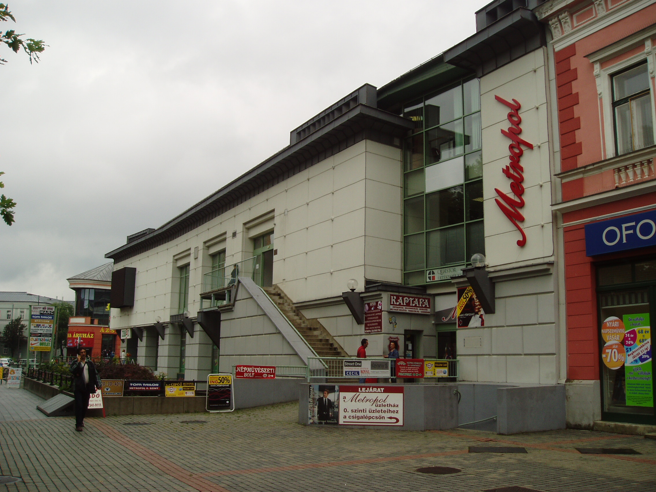 Nyilvános 956 | 3498 | Nyíregyháza, Kossuth tér 8. | A Kossuth tér déli részét ma a modern Metropol üzletház uralja. Valaha itt állt az 1793-ban felépült városháza, amelyben - a napóleoni hadak elől menekülve - 1809-ben megszállt Ferenc császár felesége a trónörökössel, a leendő V. Ferdinánddal, s állítólag magával hurcolta a koronát is. Később itt működött Benczúr gyógyszerész "Magyar Korona" nevű gyógyszertára, s ebben az épületben született 1844-ben fia, Benczúr Gyula festőművész. Felh. irod.: Látnivalók Szabolcs-Szatmár-Bereg megyében. Miskolc, Well-PRess, 1999 A fénykép 2010 augusztus elején készült. |