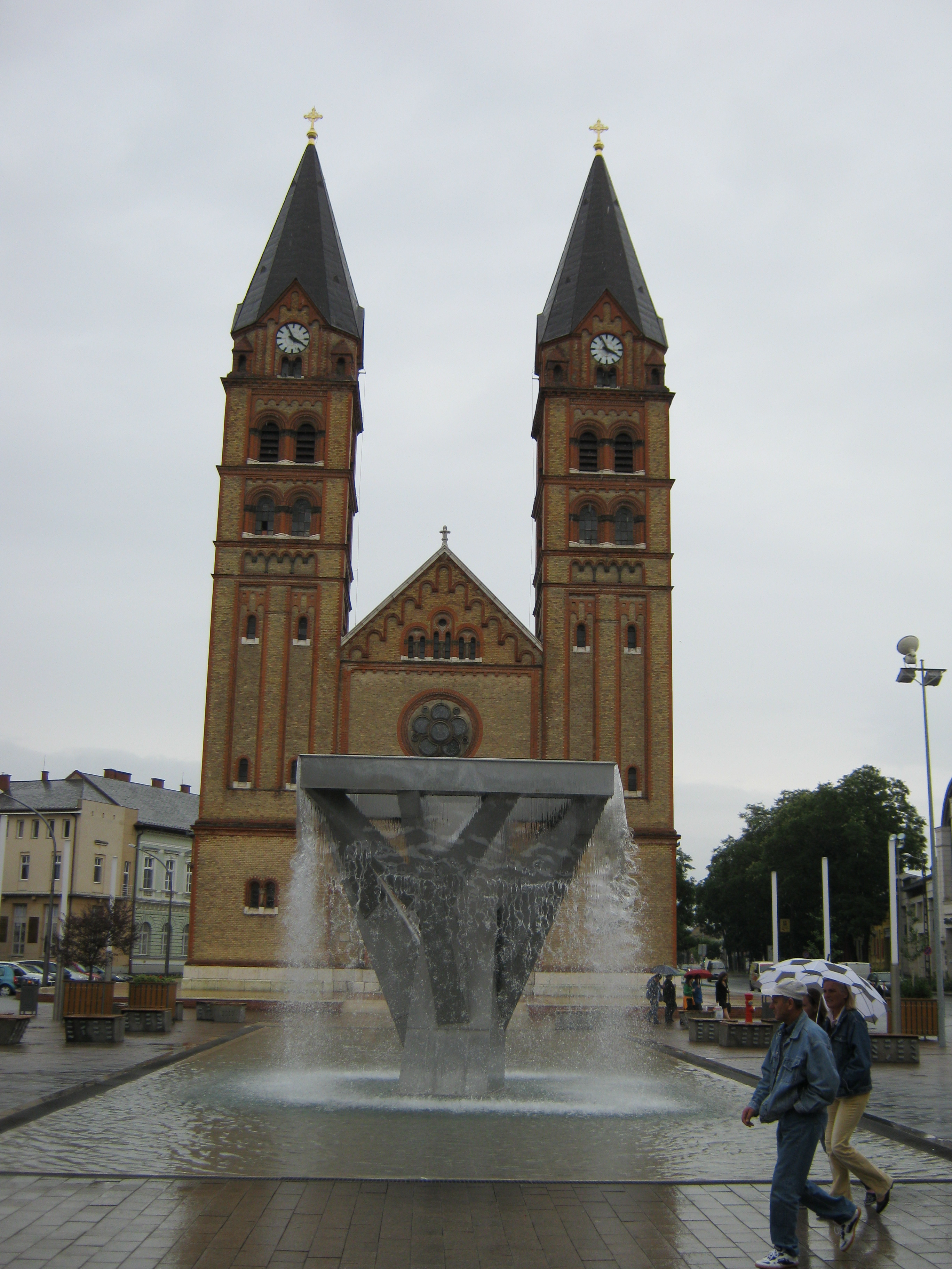 Nyilvános 933 | 1541 | Nyíregyháza, Kossuth tér: Római katolikus templom | A Kossuth tér leghatalmasabb épülete a Magyarok nagyasszonya titulust viselő római katolikus templom. 1902-ben szentelték fel a kettős tornyú, neoromán épületet. A neoromán stílusjegyek nemcsak az architektúrában, hanem a templom berendezésében is megnyilvánulnak. Orgonája a pécsi Angster-gyár terméke. A fénykép 2010 augusztus elején készült. Felh. irod.: www.nyiregyhaza.plebania.net |