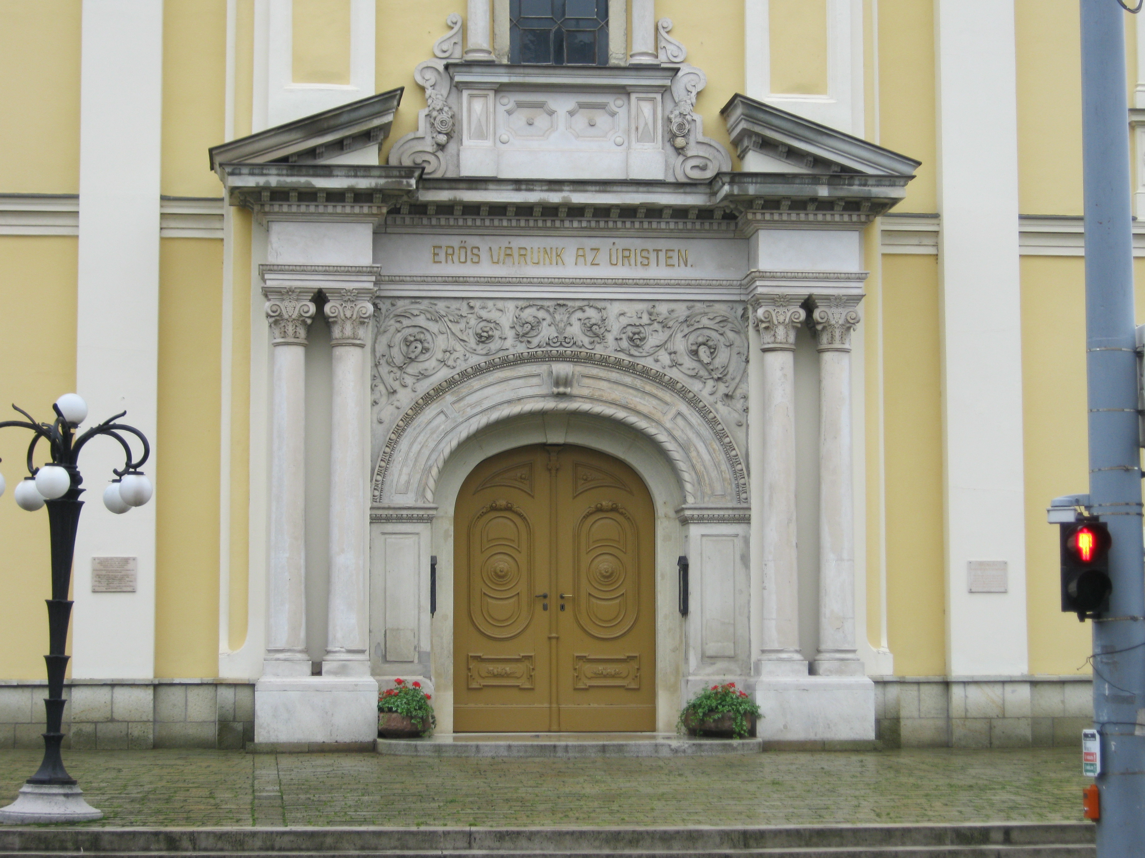 Nyilvános 902 | 1284 | Nyíregyháza, Luther tér 1. Evangélikus templom | A késő barokk épület tervezője Giuseppe Aprilis volt, alapkövét 1784-ben rakták le, s két év múlva fel is szentelhették. Építtetője az 1750-es évek közepétől Nyíregyházára települt szlovák ajkú, evangélikus hitvallású lakosság volt. Belső díszítőfestése a nyíregyházi Benczúr Gyula tervei alapján készült. 1910-ből származó orgonája Rieger Ottó műve. Az 1928-ban készült harangjáték a Luther Márton által írt "Jövel Szentlélek Úristen" kezdetű ének első két sorát játssza. A fénykép 2010 augusztus elején készült. Felh. irod.: Látnivalók Szabolcs-Szatmár-Bereg megyében. Miskolc, Well-PRess, 1999 |