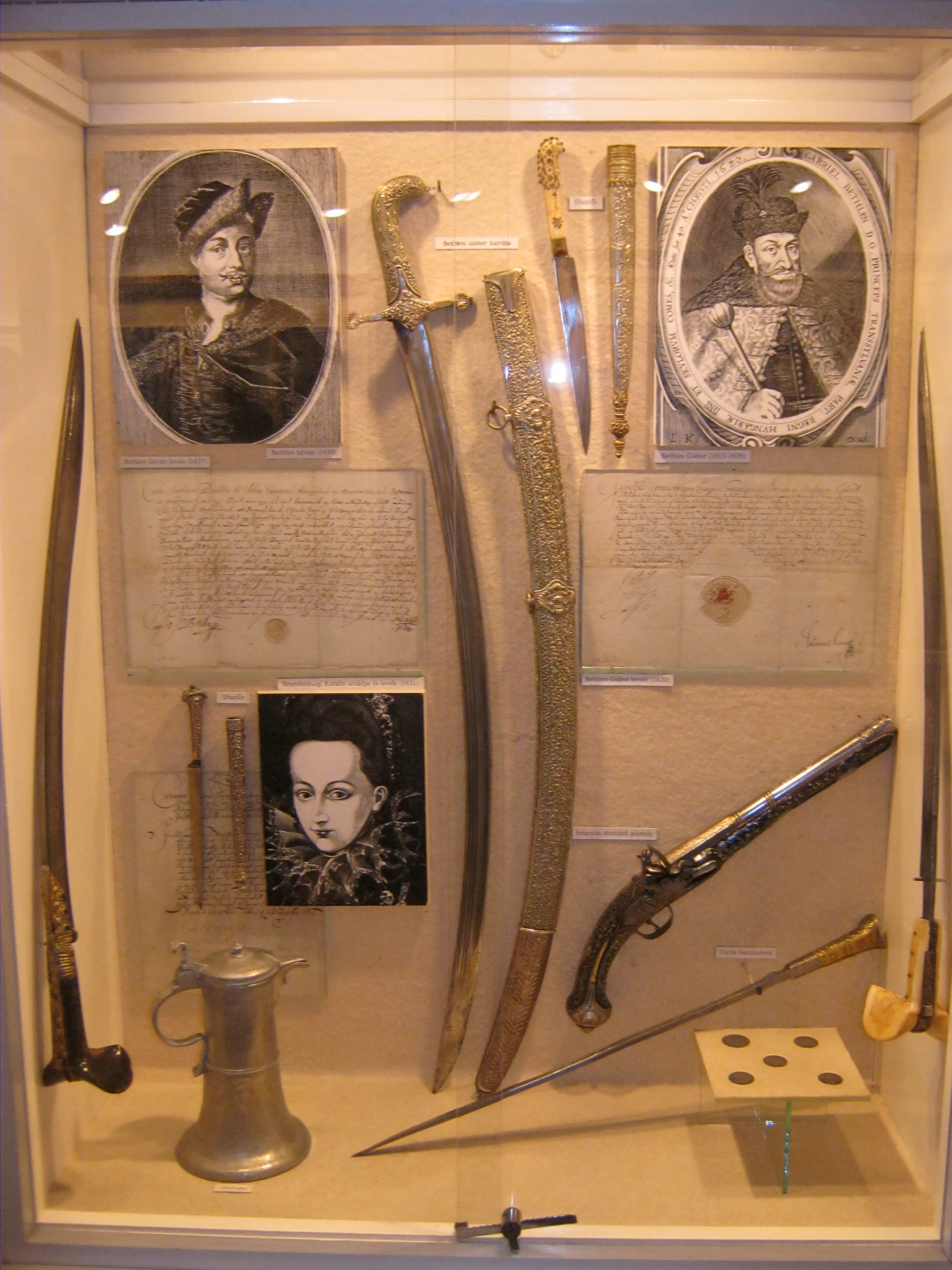 Nyilvános 942 | 1301 | Nyírbátor, Károlyi utca 21. Báthori István Múzeum | A minorita kolostor épültét 1959-ben kapta meg a múzeum. Első igazgatója, Szalontai Barnabás áldozatos munkája nyomán két év múlva már meg is nyílhatott benne az első kiállítás. A képen Bethlen Gábor relikviái: középen kardja, jobbra egy 1620-ból származó levele, balra pedig második felesége, Brandenburgi Katalin 1631-ben írott levele, alatta arcképével. Felh. irod.: Látnivalók Szabolcs-Szatmár-Bereg megyében. Miskolc, Well-PRess, 1999 www.nyirbim.hu |