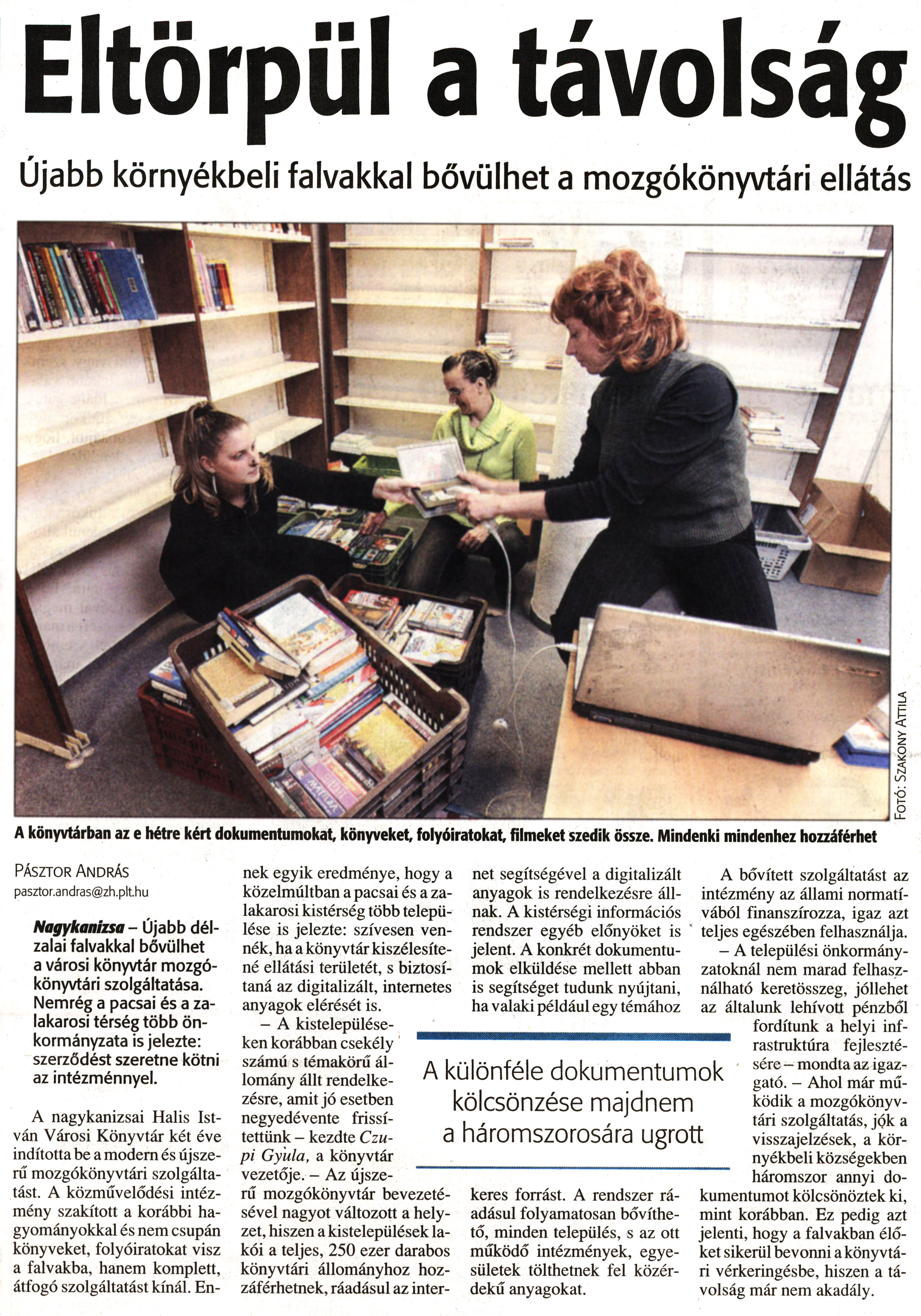 Nyilvános 1547 | 3124 | Zalai Hírlap 2008 02 05 030sz 14old - Eltörpül a távolság | A következő szöveg a cikkből keletkezett automata szövegfelismertetés segítségével: Eltörpül a távolság Újabb környékbeli falvakkal bővülhet a mozgókönyvtári ellátás •o A könyvtárban az e hétre kért dokumentumokat könyveket, folyóiratokat filmeket szedik össze. Mindenki mindenhez hozzáférhet A különféle dokumentumok kölcsönzése majdnem a háromszorosára ugrott PÁSZTOR ANDRÁS pasztor.andras@zh.plt.hu Nagykanizsa - Újabb délzalai falvakkal bővülhet a városi könyvtár mozgókönyvtári szolgáltatása. Nemrég a pacsai és a za-lakarosi térség több önkormányzata is jelezte: szerződést szeretne kötni az intézménnyel. A nagykanizsai Halis István Városi Könyvtár két éve indította be a modern és újszerű mozgókönyvtári szolgáltatást. A közművelődési intézmény szakított a korábbi hagyományokkal és nem csupán könyveket, folyóiratokat visz a falvakba, hanem komplett, átfogó szolgáltatást kínál. En- nek egyik eredménye, hogy a közelmúltban a pacsai és a za-lakarosi kistérség több települése is jelezte: szívesen vennék, ha a könyvtár kiszélesítené ellátási területét, s biztosítaná az digitalizált, internetes anyagok elérését is. - A kistelepülése- ___ ken korábban csekély számú s témakörű állomány állt rendelkezésre, amit jó esetben negyedévente frissítettünk - kezdte Czu-pi Gyula, a könyvtár vezetője. - Az újsze-rű mozgókönyvtár bevezetésével nagyot változott a helyzet, hiszen a kistelepülések lakói a teljes, 250 ezer darabos könyvtári állományhoz hozzáférhetnek, ráadásul az inter- net segítségével a digitalizált anyagok is rendelkezésre állnak. A kistérségi információs rendszer egyéb előnyöket is jelent. A konkrét dokumentumok elküldése mellett abban is segítséget tudunk nyújtani, ha valaki például egy témához keres forrást. A rendszer ráadásul folyamatosan bővíthető, minden település, s az ott működő intézmények, egyesületek tölthetnek fel közérdekű anyagokat. A bővített szolgáltatást az intézmény az állami normatívából finanszírozza, igaz azt teljes egészében felhasználja. - A települési önkormányzatoknál nem marad felhasználható keretösszeg, jóllehet az általunk lehívott pénzből ^^ fordítunk a helyi infrastruktúra fejlesztésére — mondta az igazgató. - Ahol már működik a mozgókönyvtári szolgáltatás, jpk a visszajelzések, a környékbeli községekben háromszor annyi dokumentumot kölcsönöztek ki, mint korábban. Ez pedig azt jelenti, hogy a falvakban élőket sikerül bevonni a könyvtári vérkeringésbe, hiszen a távolság már nem akadály. |