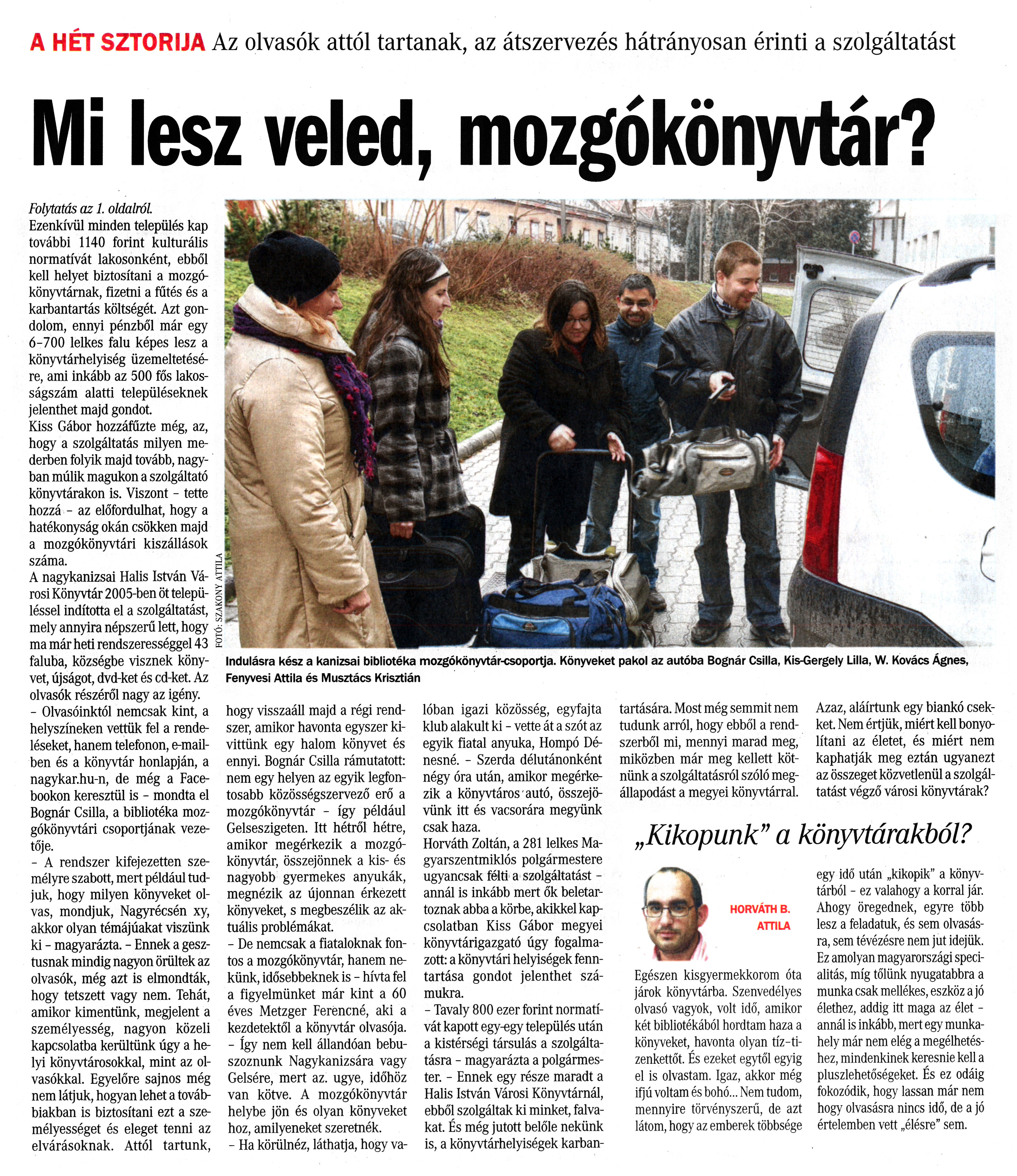 Nyilvános 1606 | 4784 | Vasárnapi Zalai Hírlap 2013. január 13. 2. szám 3. oldal - Mi lesz veled, mozgókönyvtár? | A HÉT SZTORIJA Az olvasók attól tartanak, az átszervezés hátrányosan érinti a szolgáltatást Mi lesz veled, mozgókönyvtár? FOTÓ: SZAKONY ATTILA Indulásra kész a kanizsai bibliotéka mozgókönyvtár-csoportja. Könyveket pakol az autóba Bognár Csilla, Kis-Gergely Lilla, W. Kovács Ágnes, Fenyvesi Attila és Musztács Krisztián Folytatás az 1. oldalról. Ezenkívül minden település kap további 1140 forint kulturális normatívát lakosonként, ebből kell helyet biztosítani a mozgókönyvtárnak, fizetni a fűtés és a karbantartás költségét. Azt gondolom, ennyi pénzből már egy 6-700 lelkes falu képes lesz a könyvtárhelyiség üzemeltetésére, ami inkább az 500 fős lakosságszám alatti településeknek jelenthet majd gondot. Kiss Gábor hozzáfűzte még, az, hogy a szolgáltatás milyen mederben folyik majd tovább, nagyban múlik magukon a szolgáltató könyvtárakon is. Viszont - tette hozzá - az előfordulhat, hogy a hatékonyság okán csökken majd a mozgókönyvtári kiszállások száma. A nagykanizsai Halis István Városi Könyvtár 2005-ben öt településsel indította el a szolgáltatást, mely annyira népszerű lett, hogy ma már heti rendszerességgel 43 faluba, községbe visznek könyvet, újságot, dvd-ket és cd-ket. Az olvasók részéről nagy az igény. - Olvasóinktól nemcsak kint, a helyszíneken vettük fel a rendeléseket, hanem telefonon, e-mail-ben és a könyvtár honlapján, a nagykar.hu-n, de még a Facebookon keresztül is - mondta el Bognár Csilla, a bibliotéka mozgókönyvtári csoportjának vezetője. - A rendszer kifejezetten személyre szabott, mert például tudjuk, hogy milyen könyveket olvas, mondjuk, Nagyrécsén xy, akkor olyan témájúakat viszünk ki - magyarázta. - Ennek a gesztusnak mindig nagyon örültek az olvasók, még azt is elmondták, hogy tetszett vagy nem. Tehát, amikor kimentünk, megjelent a személyesség, nagyon közeli kapcsolatba kerültünk úgy a helyi könyvtárosokkal, mint az olvasókkal. Egyelőre sajnos még nem látjuk, hogyan lehet a továbbiakban is biztosítani ezt a személyességet és eleget tenni az elvárásoknak. Attól tartunk, hogy visszaáll majd a régi rendszer, amikor havonta egyszer kivittünk egy halom könyvet és ennyi. Bognár Csilla rámutatott: nem egy helyen az egyik legfontosabb közösségszervező erő a mozgókönyvtár - így például Gelseszigeten. Itt hétről hétre, amikor megérkezik a mozgókönyvtár, összejönnek a kis- és nagyobb gyermekes anyukák, megnézik az újonnan érkezett könyveket, s megbeszélik az aktuális problémákat. - De nemcsak a fiataloknak fontos a mozgókönyvtár, hanem nekünk, idősebbeknek is - hívta fel a figyelmünket már kint a 60 éves Metzger Ferencné, aki a kezdetektől a könyvtár olvasója. - Így nem kell állandóan bebuszoznunk Nagykanizsára vagy Gelsére, mert az. ugye, időhöz van kötve. A mozgókönyvtár helybe jön és olyan könyveket hoz, amilyeneket szeretnék. - Ha körülnéz, láthatja, hogy valóban igazi közösség, egyfajta klub alakult ki - vette át a szót az egyik fiatal anyuka, Hompó Dé-nesné. - Szerda délutánonként négy óra után, amikor megérkezik a könyvtáros autó, összejövünk itt és vacsorára megyünk csak haza. Horváth Zoltán, a 281 lelkes Magyarszentmiklós polgármestere ugyancsak félti a szolgáltatást -annál is inkább mert ők beletartoznak abba a körbe, akikkel kapcsolatban Kiss Gábor megyei könyvtárigazgató úgy fogalmazott: a könyvtári helyiségek fenntartása gondot jelenthet számukra. - Tavaly 800 ezer forint normatívát kapott egy-egy település után a kistérségi társulás a szolgáltatásra - magyarázta a polgármester. - Ennek egy része maradt a Halis István Városi Könyvtárnál, ebből szolgáltak ki minket, falvakat. És még jutott belőle nekünk is, a könyvtárhelyiségek karbantartására. Most még semmit nem tudunk arról, hogy ebből a rendszerből mi, mennyi marad meg, miközben már meg kellett kötnünk a szolgáltatásról szóló megállapodást a megyei könyvtárral. Azaz, aláírtunk egy biankó csekket. Nem értjük, miért kell bonyolítani az életet, és miért nem kaphatják meg eztán ugyanezt az összeget közvetlenül a szolgáltatást végző városi könyvtárak? „Kikopunk" a könyvtárakból? HORVÁTH B. ATTILA Egészen kisgyermekkorom óta járok könyvtárba. Szenvedélyes olvasó vagyok, volt idő, amikor két bibliotékából hordtam haza a könyveket, havonta olyan tíz-tizenkettőt. És ezeket egytől egyig el is olvastam. Igaz, akkor még ifjú voltam és bohó... Nem tudom, mennyire törvényszerű, de azt látom, hogy az emberek többsége egy idő után „kikopik" a könyvtárból - ez valahogy a korral jár. Ahogy öregednek, egyre több lesz a feladatuk, és sem olvasásra, sem tévézésre nem jut idejük. Ez amolyan magyarországi specialitás, míg tőlünk nyugatabbra a munka csak mellékes, eszköz a jó élethez, addig itt maga az élet -annál is inkább, mert egy munkahely már nem elég a megélhetéshez, mindenkinek keresnie kell a pluszlehetőségeket. És ez odáig fokozódik, hogy lassan már nem hogy olvasásra nincs idő, de a jó értelemben vett „élésre" sem. |