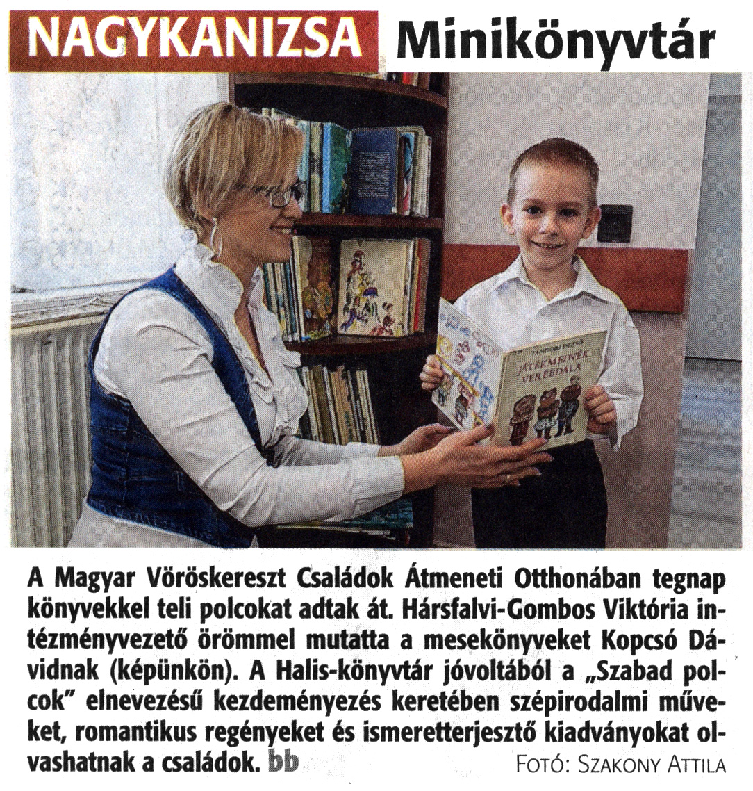 Nyilvános 1581 | 2843 | Zalai Hírlap 2018. március 23. 69. szám 16. oldal | Minikönyvtár A Magyar Vöröskereszt Családok Átmeneti Otthonában tegnap könyvekkel teli polcokat adtak át. Hársfalvi-Gombos Viktória intézményvezető örömmel mutatta a mesekönyveket Kopcsó Dávidnak (képünkön). A Halis-könyvtár jóvoltából a „Szabad polcok" elnevezésű kezdeményezés keretében szépirodalmi műveket, romantikus regényeket és ismeretterjesztő kiadványokat olvashatnak a családok. bb Fotó: Szakony Attila |