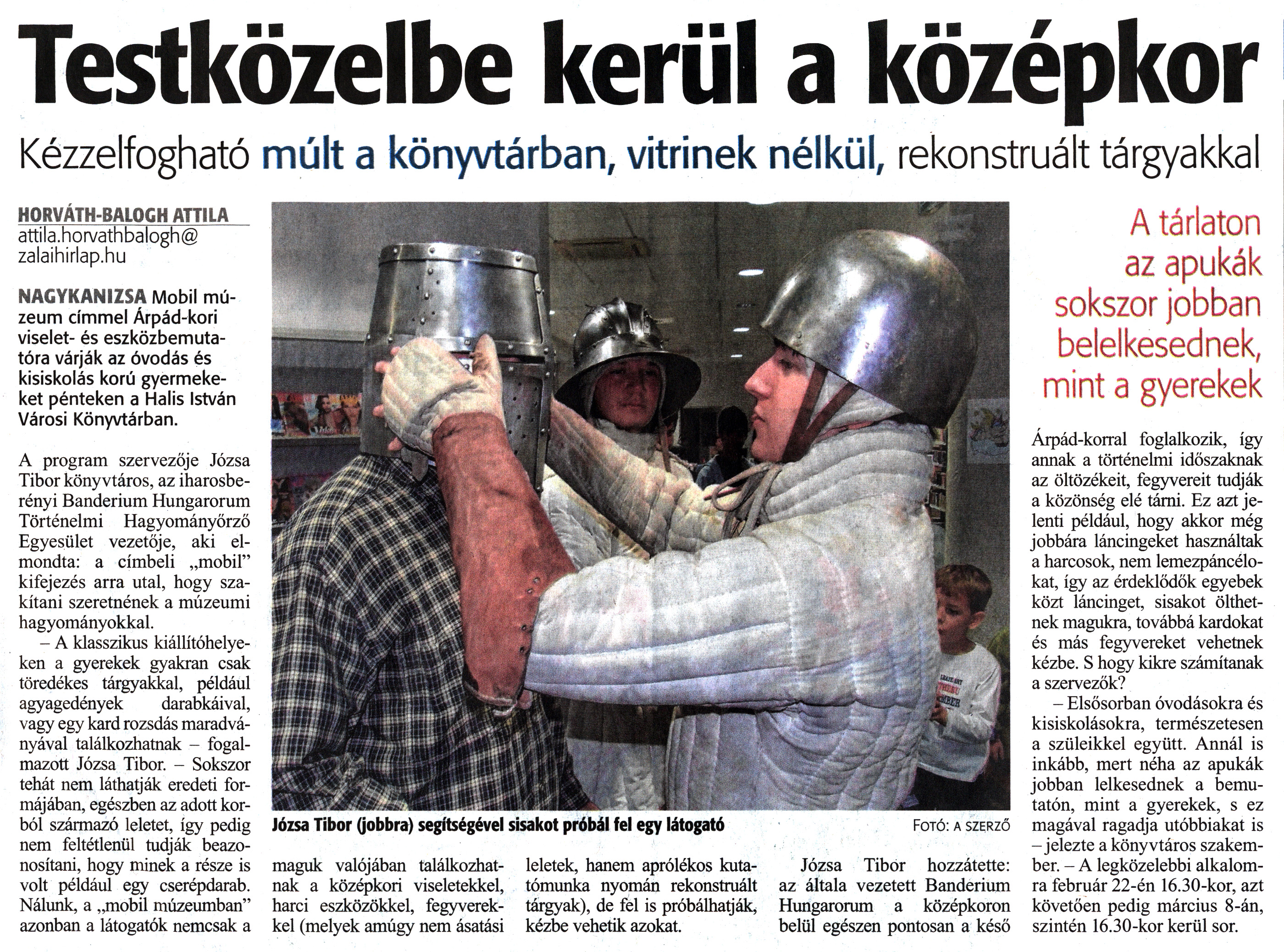 Nyilvános 1586 | 2518 | Zalai Hírlap 2019. február 20. 43. szám 13. oldal | Testközelbe kerül a középkor Kézzelfogható múlt a könyvtárban, vitrinek nélkül, rekonstruált tárgyakkal HORVÁTH BALOGH ATTILA attila.horvathbalogh@ zalaihirlap.hu NAGYKANIZSA Mobil múzeum címmel Árpád-kori viselet- és eszközbemutatóra várják az óvodás és kisiskolás korú gyermekeket pénteken a Halis István Városi Könyvtárban. A program szervezője Józsa Tibor könyvtáros, az iharosberényi Banderium Hungarorum Történelmi Hagyományőrző Egyesület vezetője, aki elmondta: a címbeli „mobil" kifejezés arra utal, hogy szakítani szeretnének a múzeumi hagyományokkal. - A klasszikus kiállítóhelyeken a gyerekek gyakran csak töredékes tárgyakkal, például agyagedények darabkáival, vagy egy kard rozsdás maradványával találkozhatnak - fogalmazott Józsa Tibor. - Sokszor tehát nem láthatják eredeti formájában, egészben az adott korból származó leletet, így pedig nem feltétlenül tudják beazonosítani, hogy minek a része is volt például egy cserépdarab. Nálunk, a „mobil múzeumban" azonban a látogatók nemcsak a maguk valójában találkozhatnak a középkori viseletekkel, harci eszközökkel, fegyverekkel (melyek amúgy nem ásatási leletek, hanem aprólékos kutatómunka nyomán rekonstruált tárgyak), de fel is próbálhatják, kézbe vehetik azokat. Józsa Tibor hozzátette: az általa vezetett Banderium Hungarorum a középkoron belül egészen pontosan a késő Árpád-korral foglalkozik, így annak a történelmi időszaknak az öltözékeit, fegyvereit tudják a közönség elé tárni. Ez azt jelenti például, hogy akkor még jobbára láncingeket használtak a harcosok, nem lemezpáncélokat, így az érdeklődők egyebek közt láncinget, sisakot ölthetnek magukra, továbbá kardokat és más fegyvereket vehetnek kézbe. S hogy kikre számítanak a szervezők? - Elsősorban óvodásokra és kisiskolásokra, természetesen a szüleikkel együtt. Annál is inkább, mert néha az apukák jobban lelkesednek a bemutatón, mint a gyerekek, s ez magával ragadja utóbbiakat is - jelezte a könyvtáros szakember. - A legközelebbi alkalomra február 22-én 16.30-kor, azt követően pedig március 8-án, szintén 16.30-kor kerül sor. Józsa Tibor (jobbra) segítségével sisakot próbál fel egy látogató Fotó: a szerző A tárlaton az apukák sokszor jobban belelkesednek, mint a gyerekek |