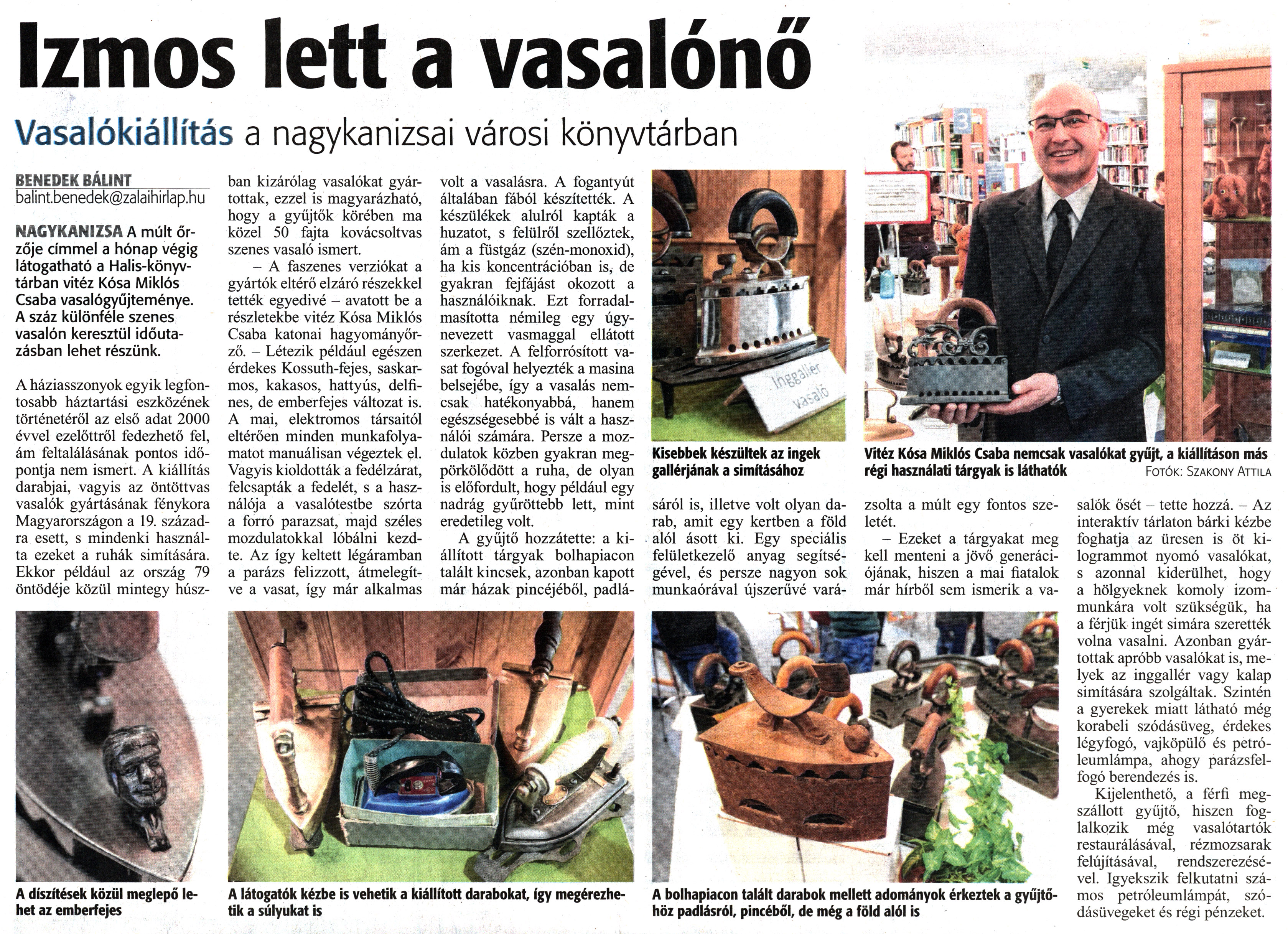 Nyilvános 1513 | 2747 | Zalai Hírlap 2019. március 26. 71. szám 9. oldal | BENEDEK BÁLINT balint.benedek@zalaihirlap.hu NAGYKANIZSA A múlt őrzője címmel a hónap végig látogatható a Halis-könyvtárban vitéz Kósa Miklós Csaba vasalógyűjteménye. A száz különféle szenes vasalón keresztül időutazásban lehet részünk. A háziasszonyok egyik legfontosabb háztartási eszközének történetéről az első adat 2000 évvel ezelőttről fedezhető fel, ám feltalálásának pontos időpontja nem ismert. A kiállítás darabjai, vagyis az öntöttvas vasalók gyártásának fénykora Magyarországon a 19. századra esett, s mindenki használta ezeket a ruhák simítására. Ekkor például az ország 79 öntödéje közül mintegy húszban kizárólag vasalókat gyártottak, ezzel is magyarázható, hogy a gyűjtők körében ma közel 50 fajta kovácsoltvas szenes vasaló ismert. - A faszenes verziókat a gyártók eltérő elzáró részekkel tették egyedivé - avatott be a részletekbe vitéz Kósa Miklós Csaba katonai hagyományőrző. - Létezik például egészen érdekes Kossuth-fejes, saskarmos, kakasos, hattyús, delfines, de emberfejes változat is. A mai, elektromos társaitól eltérően minden munkafolyamatot manuálisan végeztek el. Vagyis kioldották a fedélzárat, felcsapták a fedelét, s a használója a vasalótestbe szórta a forró parazsat, majd széles mozdulatokkal lóbálni kezdte. Az így keltett légáramban a parázs felizzott, átmelegítve a vasat, így már alkalmas volt a vasalásra. A fogantyút általában fából készítették. A készülékek alulról kapták a huzatot, s felülről szellőztek, ám a füstgáz (szén-monoxid), ha kis koncentrációban is, de gyakran fejfájást okozott a használóiknak. Ezt forradalmasította némileg egy úgynevezett vasmaggal ellátott szerkezet. A felforrósított vasat fogóval helyezték a masina belsejébe, így a vasalás nemcsak hatékonyabbá, hanem egészségesebbé is vált a használói számára. Persze a mozdulatok közben gyakran megpörkölődött a ruha, de olyan is előfordult, hogy például egy nadrág gyűröttebb lett, mint eredetileg volt. A gyűjtő hozzátette: a kiállított tárgyak bolhapiacon talált kincsek, azonban kapott már házak pincéjéből, padlásáról is, illetve volt olyan darab, amit egy kertben a föld alól ásott ki. Egy speciális felületkezelő anyag segítségével, és persze nagyon sok munkaórával újszerűvé varázsolta a múlt egy fontos szeletét. - Ezeket a tárgyakat meg kell menteni a jövő generációjának, hiszen a mai fiatalok már hírből sem ismerik a vasalók ősét - tette hozzá. - Az interaktív tárlaton bárki kézbe foghatja az üresen is öt kilogrammot nyomó vasalókat, s azonnal kiderülhet, hogy a hölgyeknek komoly izommunkára volt szükségük, ha a férjük ingét simára szerették volna vasalni. Azonban gyártottak apróbb vasalókat is, melyek az inggallér vagy kalap simítására szolgáltak. Szintén a gyerekek miatt látható még korabeli szódásüveg, érdekes légyfogó, vajköpülő és petróleumlámpa, ahogy parázsfelfogó berendezés is. Kijelenthető, a férfi megszállott gyűjtő, hiszen foglalkozik még vasalótartók restaurálásával, rézmozsarak felújításával, rendszerezésével. Igyekszik felkutatni számos petróleumlámpát, szódásüvegeket és régi pénzeket. A látogatók kézbe is vehetik a kiállított darabokat, így megérezhetik a súlyukat is A bolhapiacon talált darabok mellett adományok érkeztek a gyűjtőhöz padlásról, pincéből, de még a föld alól is A díszítések közül meglepő lehet az emberfejes Izmos lett a vasalónő Vasalókiállítás a nagykanizsai városi könyvtárban Vitéz Kósa Miklós Csaba nemcsak vasalókat gyűjt, a kiállításon más régi használati tárgyak is láthatók Fotók: Szakony Attila |
