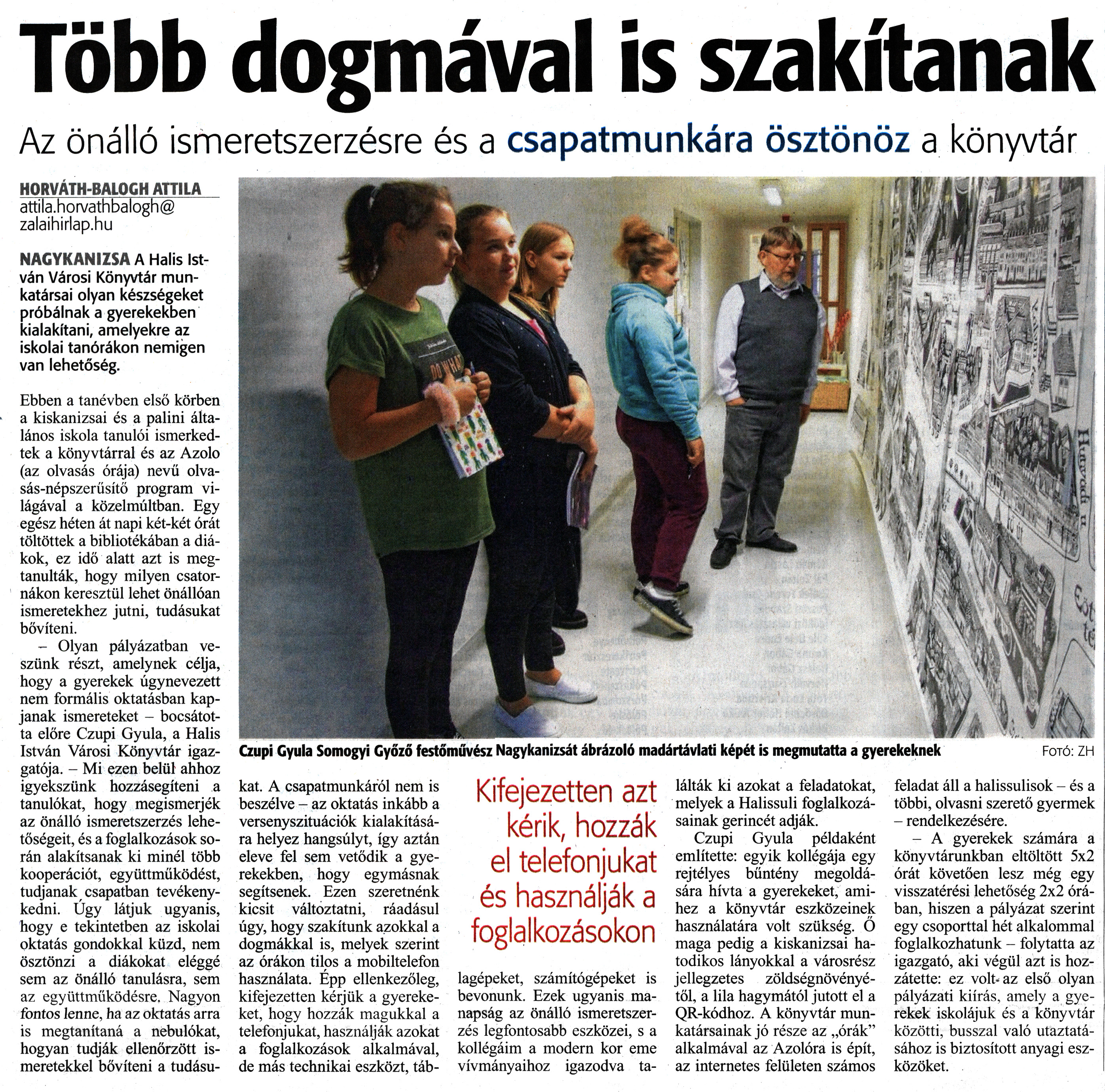 Nyilvános 1368 | 2334 | Zalai Hírlap 2019. október 31. 253. szám 6. oldal - Több dogmával is szakítanak | Több dogmával is szakítanak Az önálló ismeretszerzésre és a csapatmunkára ösztönöz a könyvtár HORVÁTH-BALOGH ATTILA attila.horvathbalogh® zalaihirlap.hu NAGYKANIZSA A Halis István Városi Könyvtár munkatársai olyan készségeket próbálnak a gyerekekben kialakítani, amelyekre az iskolai tanórákon nemigen van lehetőség. Ebben a tanévben első körben a kiskanizsai és a palini általános iskola tanulói ismerkedtek a könyvtárral és az Azolo (az olvasás órája) nevű olva-sás-népszerüsítő program világával a közelmúltban. Egy egész héten át napi két-két órát töltöttek a bibliotékában a diákok, ez idő alatt azt is megtanulták, hogy milyen csatornákon keresztül lehet önállóan ismeretekhez jutni, tudásukat bővíteni. - Olyan pályázatban veszünk részt, amelynek célja, hogy a gyerekek úgynevezett nem formális oktatásban kapjanak ismereteket - bocsátotta előre Czupi Gyula, a Halis István Városi Könyvtár igazgatója. - Mi ezen belül ahhoz igyekszünk hozzásegíteni a tanulókat, hogy megismerjék az önálló ismeretszerzés lehetőségeit, és a foglalkozások során alakítsanak ki minél több kooperációt, együttműködést, tudjanak csapatban tevékenykedni. Úgy látjuk ugyanis, hogy e tekintetben az iskolai oktatás gondokkal küzd, nem ösztönzi a diákokat eléggé sem az önálló tanulásra, sem az együttműködésre. Nagyon fontos lenne, ha az oktatás arra is megtanítaná a nebulókat, hogyan tudják ellenőrzött ismeretekkel bővíteni a tudásu- kat. A csapatmunkáról nem is beszélve - az oktatás inkább a versenyszituációk kialakítására helyez hangsúlyt, így aztán eleve fel sem vetődik a gyerekekben, hogy egymásnak segítsenek. Ezen szeretnénk kicsit változtatni, ráadásul úgy, hogy szakítunk azokkal a dogmákkal is, melyek szerint az órákon tilos a mobiltelefon használata. Épp ellenkezőleg, kifejezetten kérjük a gyerekeket, hogy hozzák magukkal a telefonjukat, használják azokat a foglalkozások alkalmával, de más technikai eszközt, táblagépeket, számítógépeket is bevonunk. Ezek ugyanis manapság az önálló ismeretszerzés legfontosabb eszközei, s a kollégáim a modern kor eme vívmányaihoz igazodva találták ki azokat a feladatokat, melyek a Halissuli foglalkozásainak gerincét adják. Czupi Gyula példaként említette: egyik kollégája egy rejtélyes bűntény megoldására hívta a gyerekeket, amihez a könyvtár eszközeinek használatára volt szükség. Ő maga pedig a kiskanizsai hatodikos lányokkal a városrész jellegzetes zöldségnövényétől, a lila hagymától jutott el a QR-kódhoz. A könyvtár munkatársainak jó része az „órák" alkalmával az Azolóra is épít, az internetes felületen számos feladat áll a halissulisok - és a többi, olvasni szerető gyermek - rendelkezésére. - A gyerekek számára a könyvtárunkban eltöltött 5x2 órát követően lesz még egy visszatérési lehetőség 2x2 órában, hiszen a pályázat szerint egy csoporttal hét alkalommal foglalkozhatunk - folytatta az igazgató, aki végül azt is hozzátette: ez volt az első olyan pályázati kiírás, amely a gyerekek iskolájuk és a könyvtár közötti, busszal való utaztatásához is biztosított anyagi eszközöket. Czupi Gyula Somogyi Győző festőművész Nagykanizsát ábrázoló madártávlati képét is megmutatta a gyerekeknek Fotó: ZH Kifejezetten azt kérik, hozzák el telefonjukat és használják a foglalkozásokon |