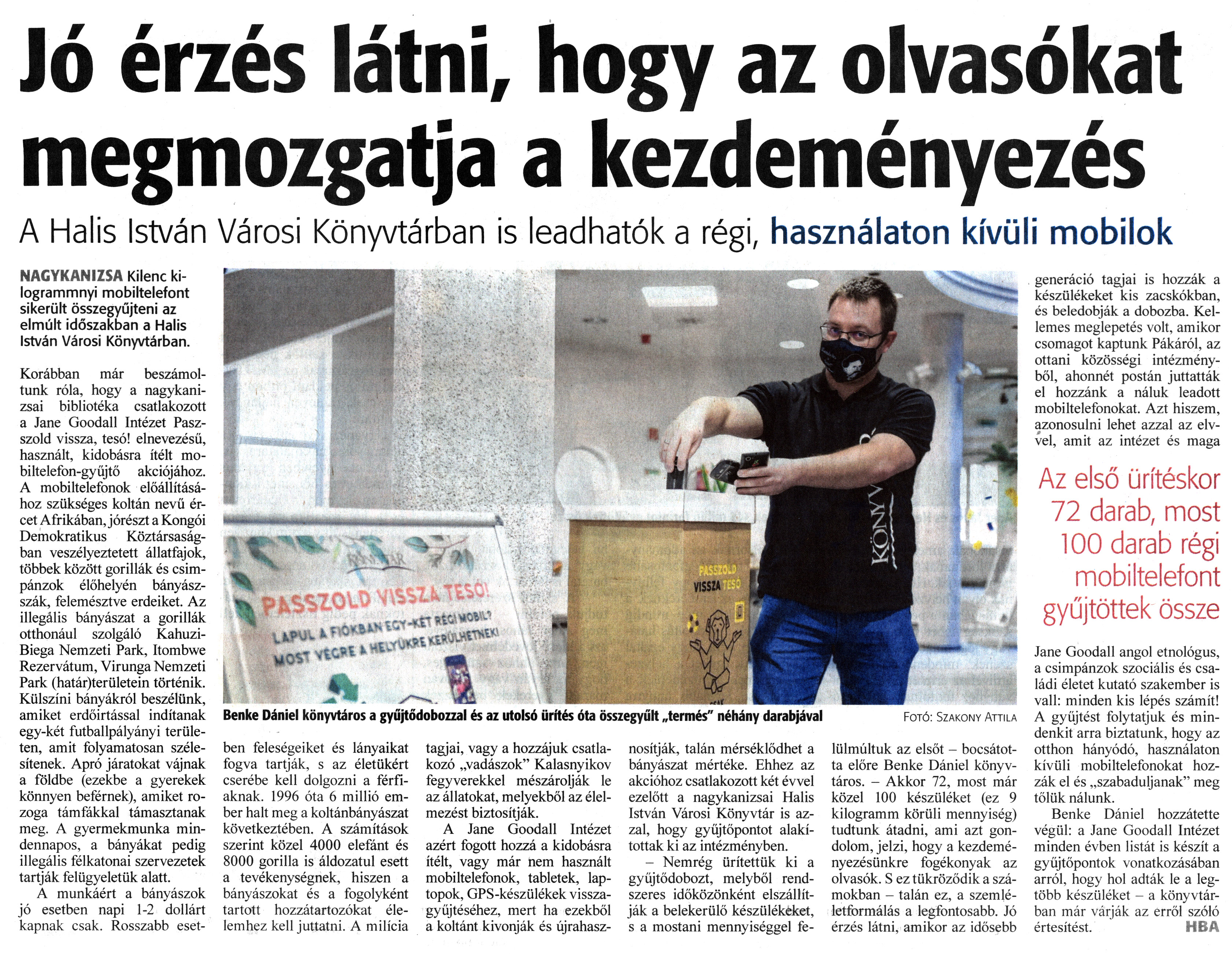 Nyilvános 1145 | 2189 | Zalai Hírlap 2021. december 21. 295. szám 5. oldal | Jó érzés látni, hogy az olvasókat megmozgatja a kezdeményezés A Halis István Városi Könyvtárban is leadhatók a régi, használaton kívüli mobilok NAGYKANIZSA Kilenc kilogrammnyi mobiltelefont sikerült összegyűjteni az elmúlt időszakban a Halis István Városi Könyvtárban. Korábban már beszámoltunk róla, hogy a nagykanizsai bibliotéka csatlakozott a Jane Goodall Intézet Passzold vissza, tesó! elnevezésű, használt, kidobásra ítélt mobiltelefon-gyűjtő akciójához. A mobiltelefonok előállításához szükséges koltán nevű ércet Afrikában, jórészt a Kongói Demokratikus Köztársaságban veszélyeztetett állatfajok, többek között gorillák és csimpánzok élőhelyén bányászszák, felemésztve erdeiket. Az illegális bányászat a gorillák otthonául szolgáló Kahuzi-Biega Nemzeti Park, Itombwe Rezervátum, Virunga Nemzeti Park határterületein történik. Külszíni bányákról beszélünk, amiket erdőirtással indítanak egy-két futballpályányi területen, amit folyamatosan szélesítenek. Apró járatokat vájnak a földbe (ezekbe a gyerekek könnyen beférnek), amiket rozoga támfákkal támasztanak meg. A gyermekmunka mindennapos, a bányákat pedig illegális félkatonai szervezetek tartják felügyeletük alatt. A munkáért a bányászok jó esetben napi 1-2 dollárt kapnak csak. Rosszabb esetben feleségeiket és lányaikat fogva tartják, s az életükért cserébe kell dolgozni a férfiaknak. 1996 óta 6 millió ember halt meg a koltánbányászat következtében. A számítások szerint közel 4000 elefánt és 8000 gorilla is áldozatul esett a tevékenységnek, hiszen a bányászokat és a fogolyként tartott hozzátartozókat élelemhez kell juttatni. A milícia tagjai, vagy a hozzájuk csatlakozó „vadászok" Kalasnyikov fegyverekkel mészárolják le az állatokat, melyekből az élelmezést biztosítják. A Jane Goodall Intézet azért fogott hozzá a kidobásra ítélt, vagy már nem használt mobiltelefonok, tabletek, laptopok, GPS-készülékek visszagyűjtéséhez, mert ha ezekből a koltánt kivonják és újrahasznosítják, talán mérséklődhet a bányászat mértéke. Ehhez az akcióhoz csatlakozott két évvel ezelőtt a nagykanizsai Halis István Városi Könyvtár is azzal, hogy gyűjtőpontot alakítottak ki az intézményben. - Nemrég ürítettük ki a gyűjtődobozt, melyből rendszeres időközönként elszállítják a belekerülő készülékeket, s a mostani mennyiséggel felülmúltuk az elsőt - bocsátotta előre Benke Dániel könyvtáros. - Akkor 72, most már közel 100 készüléket (ez 9 kilogramm körüli mennyiség) tudtunk átadni, ami azt gondolom, jelzi, hogy a kezdeményezésünkre fogékonyak az olvasók. S ez tükröződik a számokban - talán ez, a szemléletformálás a legfontosabb. Jó érzés látni, amikor az idősebb generáció tagjai is hozzák a készülékeket kis zacskókban, és beledobják a dobozba. Kellemes meglepetés volt, amikor csomagot kaptunk Pákáról, az ottani közösségi intézményből, ahonnét postán juttatták el hozzánk a náluk leadott mobiltelefonokat. Azt hiszem, azonosulni lehet azzal az elvvel, amit az intézet és maga Jane Goodall angol etnológus, a csimpánzok szociális és családi életet kutató szakember is vall: minden kis lépés számít! A gyűjtést folytatjuk és mindenkit arra biztatunk, hogy az otthon hányódó, használaton kívüli mobiltelefonokat hozzák el és „szabaduljanak" meg tőlük nálunk. Benke Dániel hozzátette végül: a Jane Goodall Intézet minden évben listát is készít a gyűjtőpontok vonatkozásában arról, hogy hol adták le a legtöbb készüléket - a könyvtárban már várják az erről szóló értesítést. HBA Benke Dániel könyvtáros a gyűjtődobozzal és az utolsó ürítés óta összegyűlt „termés" néhány darabjával Fotó: Szakony Attila |