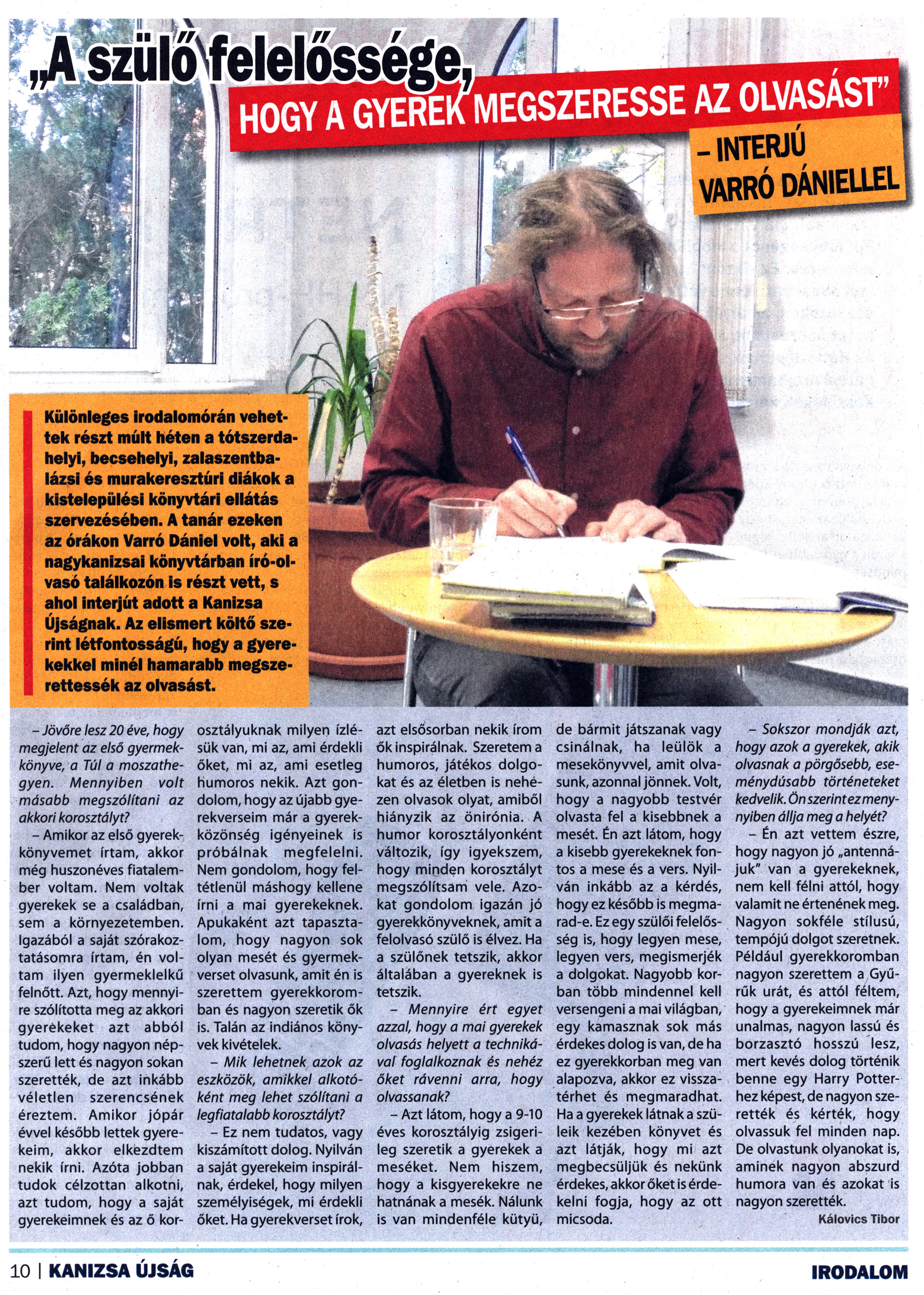 Nyilvános 1149 | 1739 | Kanizsa 2022. április 22. 8. szám 10. oldal | "A szülő felelőssége, hogy a gyerek megszeresse az olvasást" - interjú Varró Dániellel Különleges irodalomórán vehettek részt múlt héten a tótszerdahelyi, becsehelyi, zalaszentbalázsi és murakeresztúri diákok a kistelepülési könyvtári ellátás szervezésében. A tanár ezeken az órákon Varró Dániel volt, aki a nagykanizsai könyvtárban író-olvasó találkozón is részt vett, s ahol interjút adott a Kanizsa Újságnak. Az elismert költő szerint létfontosságú, hogy a gyerekekkel minél hamarabb megszerettessék az olvasást. - Jövőre lesz 20 éve, hogy megjelent az első gyermekkönyve, a Túl a moszathegyen. Mennyiben volt masabb megszólítani az akkori korosztályt? - Amikor az első gyerekkönyvemet írtam, akkor még huszonéves fiatalember voltam. Nem voltak gyerekek se a családban, sem a környezetemben. Igazából a saját szórakoztatásomra írtam, én voltam ilyen gyermeklelkű felnőtt. Azt, hogy mennyire szólította meg az akkori gyerekeket azt abból tudom, hogy nagyon népszerű lett és nagyon sokan szerették, de azt inkább véletlen szerencsének éreztem. Amikor jópár évvel később lettek gyerekeim, akkor elkézdtem nekik írni. Azóta jobban tudok célzottan alkotni, azt tudom, hogy a saját gyerekeimnek és az ő korosztályuknak milyen ízlésük van, mi az, ami érdekli őket, mi az, ami esetleg humoros nekik. Azt gondolom, hogy az újabb gyerekverseim már a gyerekközönség igényeinek is próbálnak megfelelni. Nem gondolom, hogy feltétlenül máshogy kellene írni a mai gyerekeknek. Apukaként azt tapasztalom, hogy nagyon sok olyan mesét és gyermekverset olvasunk, amit én is szerettem gyerekkoromban és nagyon szeretik ők is. Talán az indiános könyvek kivételek. - Mik lehetnek azok az eszközök, amikkel alkotóként meg lehet szólítani a legfiatalabb korosztályt? - Ez nem tudatos, vagy kiszámított dolog. Nyilván a saját gyerekeim inspirálnak, érdekel, hogy milyen személyiségek, mi érdekli őket. Ha gyerekverset írok, azt elsősorban nekik írom ők inspirálnak. Szeretem a humoros, játékos dolgokat és az életben is nehézen olvasok olyat, amiből hiányzik az önirónia. A humor korosztályonként változik, így igyekszem, hogy minden korosztályt megszólítsam vele. Azokat gondolom igazán jó gyerekkönyveknek, amit a felolvasó szülő is élvez. Ha a szülőnek tetszik, akkor általában a gyereknek is tetszik. - Mennyire ért egyet azzal, hogy a mai gyerekek olvasás helyett a technikával foglalkoznak és nehéz őket rávenni arra, hogy olvassanak? - Azt látom, hogy a 9-10 éves korosztályig zsigeri-leg szeretik a gyerekek a meséket. Nem hiszem, hogy a kisgyerekekre ne hatnának a mesék. Nálunk is van mindenféle kütyü, de bármit játszanak vagy csinálnak, ha leülök a mesekönyvvel, amit olvasunk, azonnal jönnek. Volt, hogy a nagyobb testvér olvasta fel a kisebbnek a mesét. Én azt látom, hogy a kisebb gyerekeknek fontos a mese és a vers. Nyilván inkább az a kérdés, hogy ez később is megmarad-e. Ez egy szülői felelősség is, hogy legyen mese, legyen vers, megismerjék a dolgokat. Nagyobb korban több mindennel kell versengeni a mai világban, egy kamasznak sok más érdekes dolog is van, de ha ez gyerekkorban meg van alapozva, akkor ez visszatérhet és megmaradhat. Ha a gyerekek látnak a szüleik kezében könyvet és azt látják, hogy mi azt megbecsüljük és nekünk érdekes, akkor őket is érde-kelni fogja, hogy az ott micsoda. - Sokszor mondják azt, hogy azok a gyerekek, akik olvasnak a pörgősebb, eseménydúsabb történeteket kedvelik. Ön szerint ez mennyiben állja meg a helyét? - Én azt vettem észre, hogy nagyon jó „antennájuk" van a gyerekeknek, nem kell félni attól, hogy valamit ne értenének meg. Nagyon sokféle stílusú, tempójú dolgot szeretnek. Például gyerekkoromban nagyon szerettem a Gyűrűk urát, és attól féltem, hogy a gyerekeimnek már unalmas, nagyon lassú és borzasztó hosszú lesz, mert kevés dolog történik benne egy Harry Potter-hez képest, de nagyon szerették és kérték, hogy olvassuk fel minden nap. De olvastunk olyanokat is, aminek nagyon abszurd humora van és azokat is nagyon szerették. |