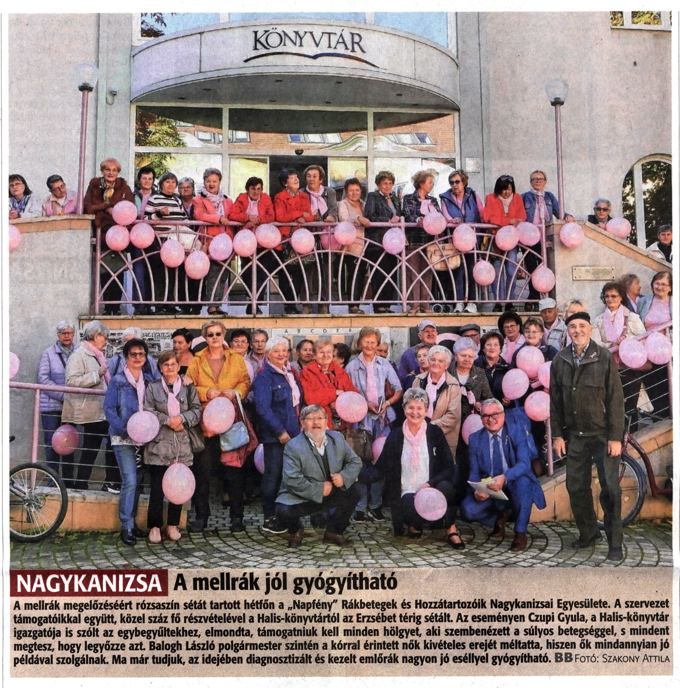 Nyilvános 1121 | 1491 | Zalai Hírlap 2022. október 4. 231. szám 1. oldal | Nagykanizsa - A mellrák jól gyógyítható A mellrák megelőzéséért rózsaszín sétát tartott hétfőn a „Napfény" Rákbetegek és Hozzátartozóik Nagykanizsai Egyesülete. A szervezet támogatóikkal együtt, közel száz fő részvételévei a Halis-könyvtártól az Erzsébet térig sétált. Az eseményen Czupi Gyula, a Halis-könyvtár igazgatója is szólt az egybegyűltekhez, elmondta, támogatniuk kell minden hölgyet, aki szembenézett a súlyos betegséggel, s mindent megtesz, hogy legyőzze azt. Balogh László polgármester szintén a kórral érintett nők kivételes erejét méltatta, hiszen ők mindannyian jó példával szolgálnak. Ma már tudjuk, az idejében diagnosztizált és kezelt emlőrák nagyon jó eséllyel gyógyítható. BB fotó: Szakony Attila |