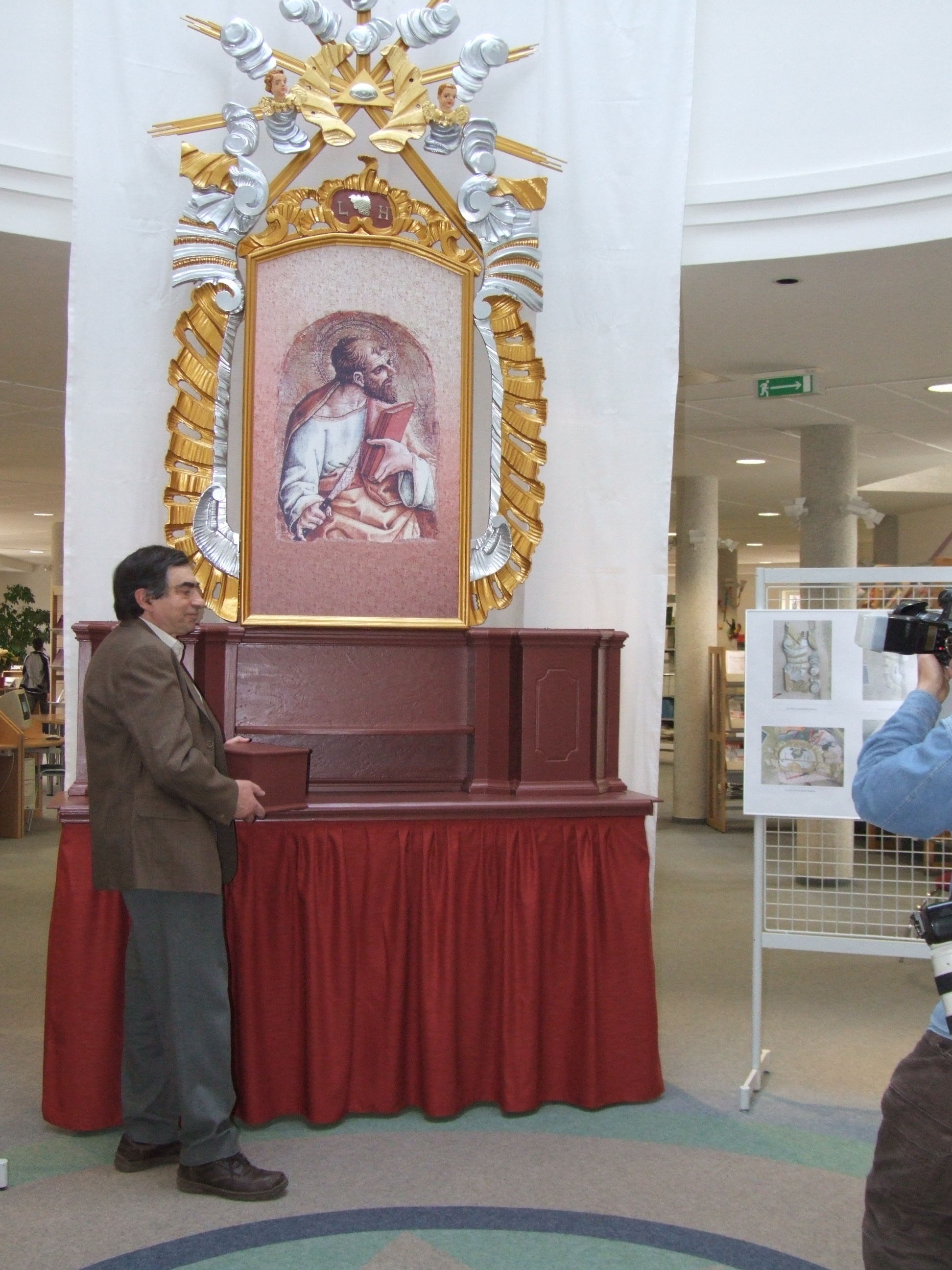 Tarnóczky Attila és az általa felújított látóhegyi kápolnából való oltár.JPG