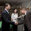 Kőművesné Szakony Erzsébet átveszi a madártávlati kép egy példányát.JPG