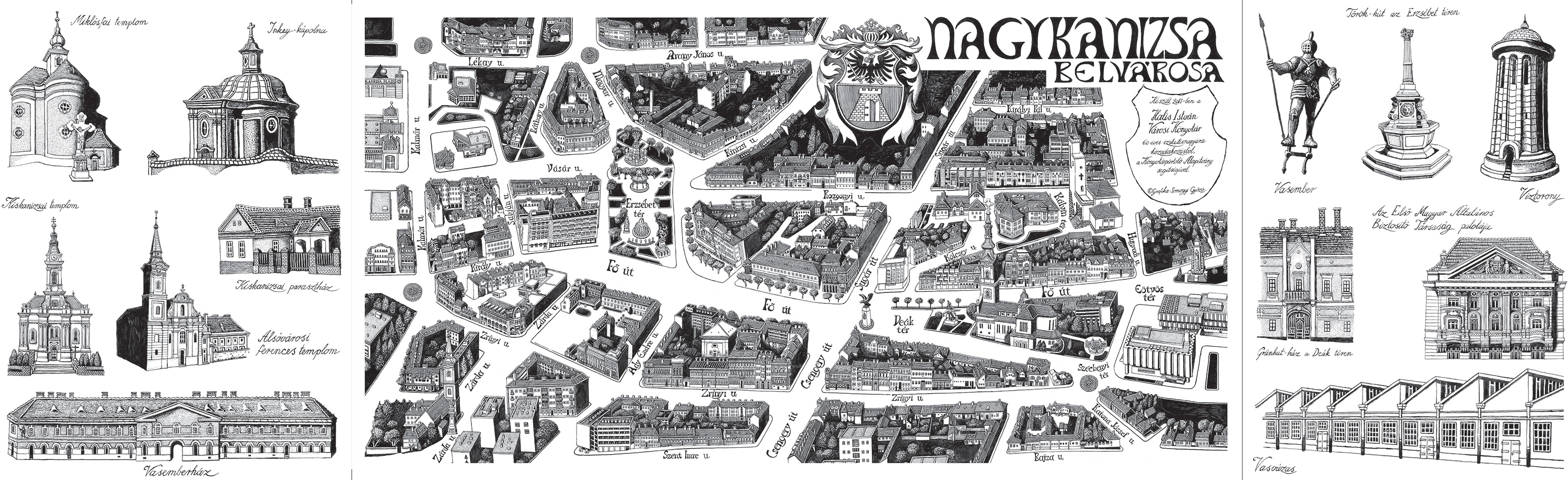 Nyilvános 2483 | 10497 | Nagykanizsa belvárosa madártávlati képe - Somogyi Győző alkotása - nagy méretben megtekinthető a könyvtárban, kis méretben meg is vásárolható a könyvtártól: | A 30x100 cm-es Nagykanizsa belvárosa madártávlati kép érvényes olvasói tagsággal rendelkezők számára 200 Ft-ba kerül, egyébként 300 Ft, fóliázott változatban 600 Ft (olvasóinknak 500 Ft). |
