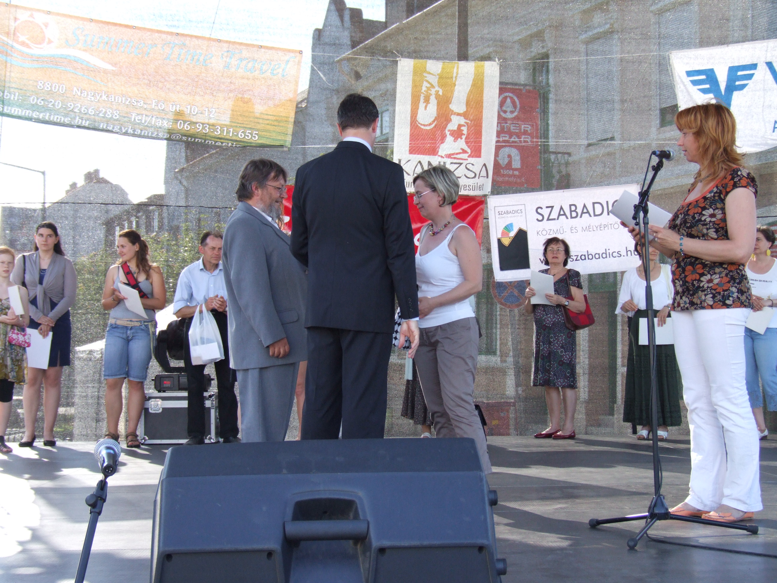 Vajda Zsuzsanna átveszi az emléklapot.JPG
