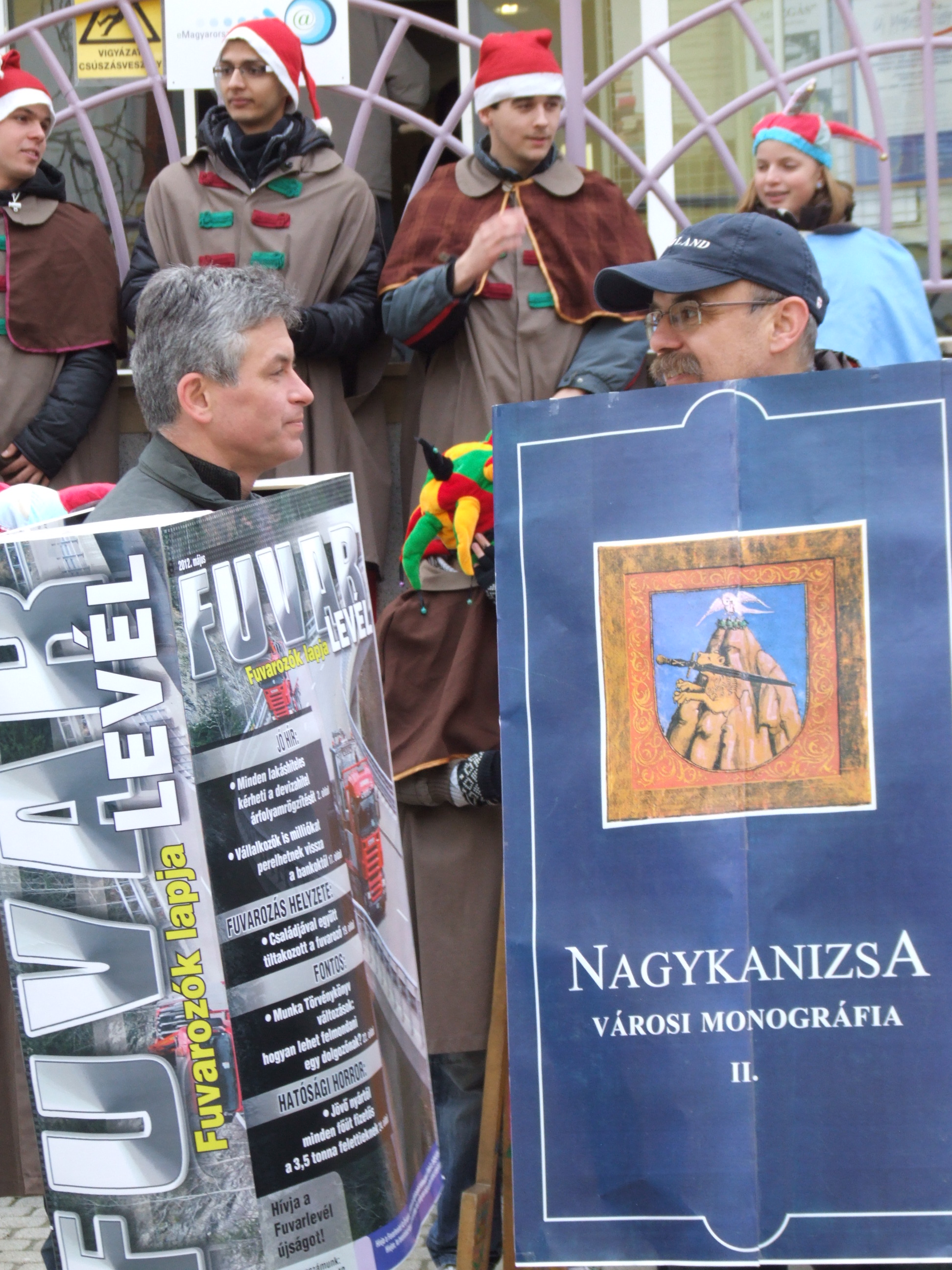 Nyilvános 1287 | 2842 | 2013. február 9. A farsangi fánkfesztiválra készülve felhívásban kértük olvasóinkat, hogy öltsék magukra kedves könyvüket. Egy „könyvespolcnyi” jelentkező vette magára kedves olvasmányát, az ő vonulásukról készültek ezek a képek. A környezetükben néhol láthatók a Nagykanizsai Gólyalábasok, akik szintén a könyvtárhoz kötődnek. A „felvonuló kötetek” a könyvtár épületében még megtekinthetők. | |