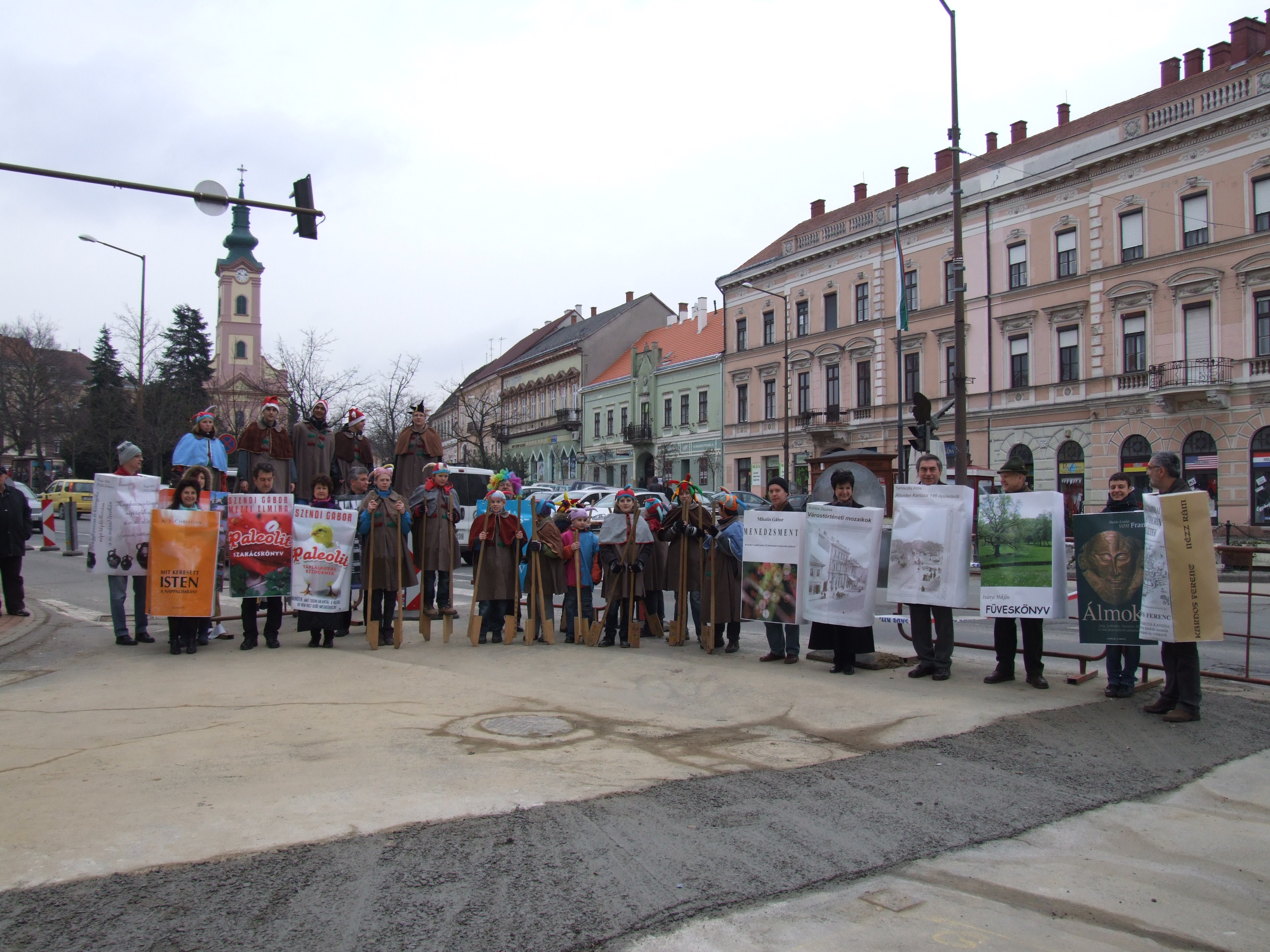 Nyilvános 999 | 1491 | 2013. február 9. A farsangi fánkfesztiválra készülve felhívásban kértük olvasóinkat, hogy öltsék magukra kedves könyvüket. Egy „könyvespolcnyi” jelentkező vette magára kedves olvasmányát, az ő vonulásukról készültek ezek a képek. A környezetükben néhol láthatók a Nagykanizsai Gólyalábasok, akik szintén a könyvtárhoz kötődnek. A „felvonuló kötetek” a könyvtár épületében még megtekinthetők. | |