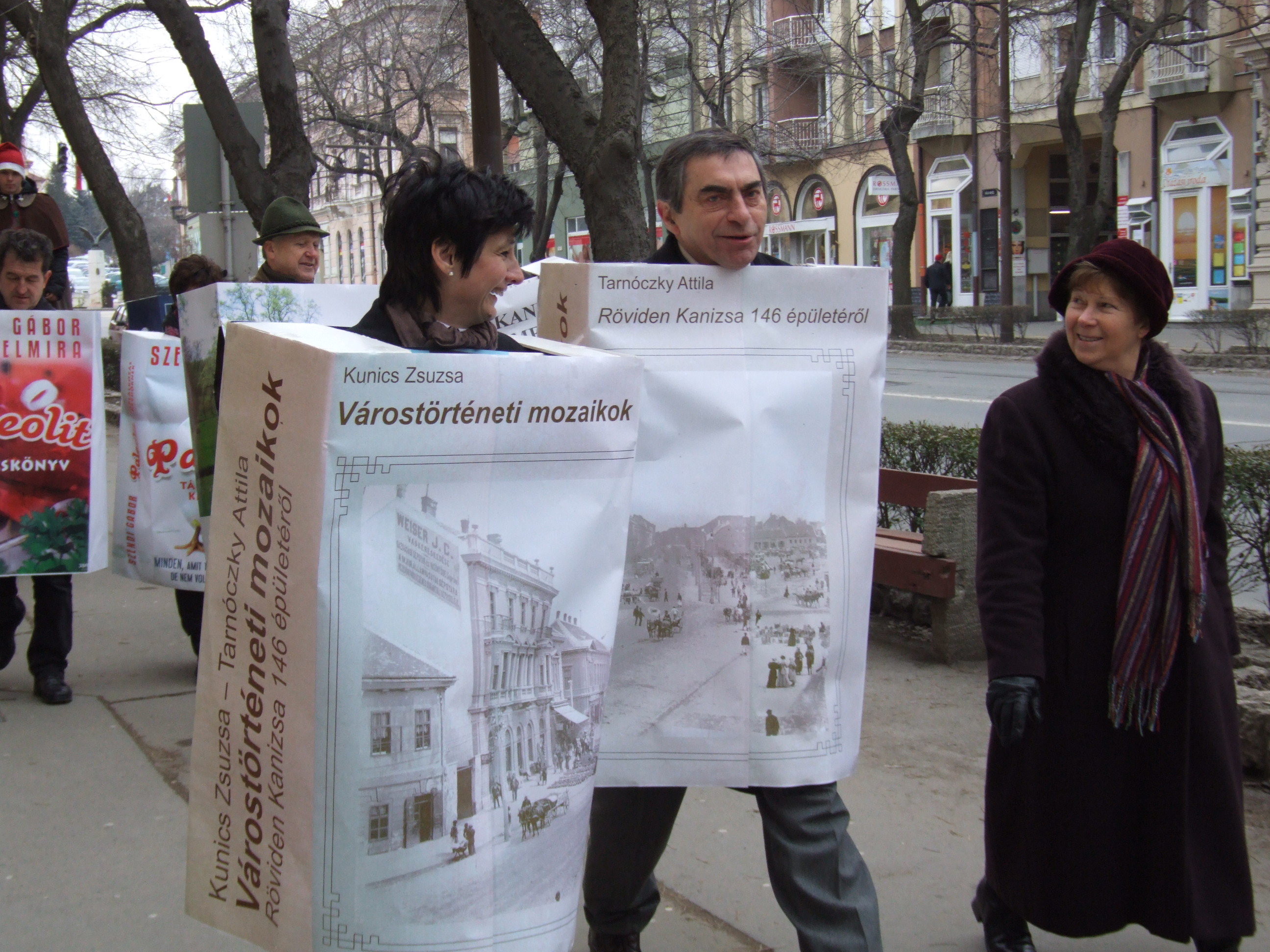 Nyilvános 992 | 1431 | 2013. február 9. A farsangi fánkfesztiválra készülve felhívásban kértük olvasóinkat, hogy öltsék magukra kedves könyvüket. Egy „könyvespolcnyi” jelentkező vette magára kedves olvasmányát, az ő vonulásukról készültek ezek a képek. A környezetükben néhol láthatók a Nagykanizsai Gólyalábasok, akik szintén a könyvtárhoz kötődnek. A „felvonuló kötetek” a könyvtár épületében még megtekinthetők. | |