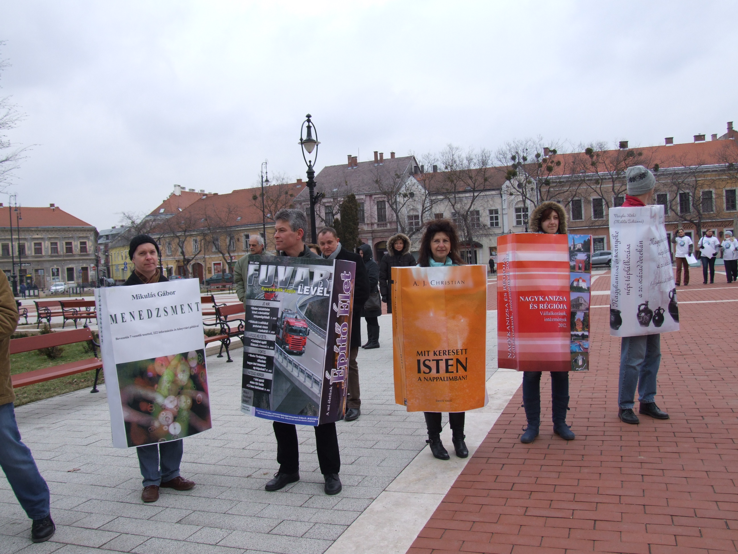 Nyilvános 951 | 1285 | 2013. február 9. A farsangi fánkfesztiválra készülve felhívásban kértük olvasóinkat, hogy öltsék magukra kedves könyvüket. Egy „könyvespolcnyi” jelentkező vette magára kedves olvasmányát, az ő vonulásukról készültek ezek a képek. A környezetükben néhol láthatók a Nagykanizsai Gólyalábasok, akik szintén a könyvtárhoz kötődnek. A „felvonuló kötetek” a könyvtár épületében még megtekinthetők. | |