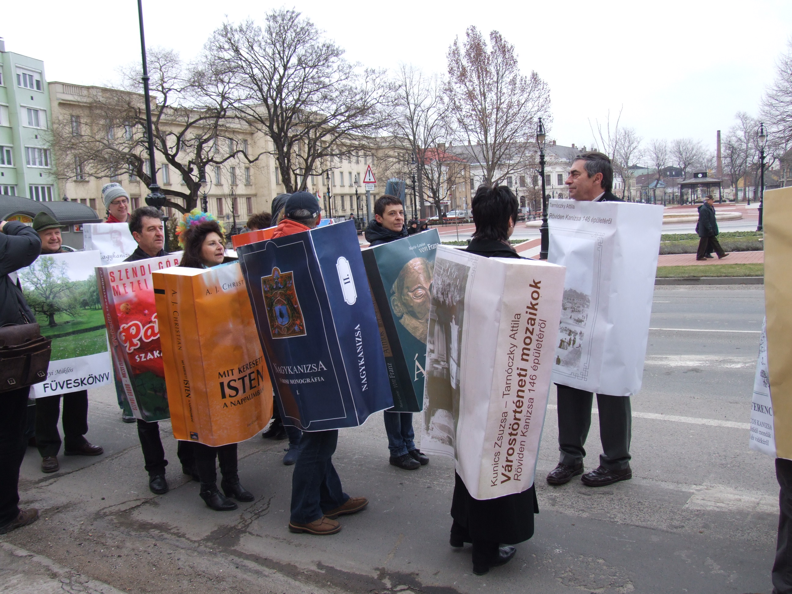 Nyilvános 989 | 1322 | 2013. február 9. A farsangi fánkfesztiválra készülve felhívásban kértük olvasóinkat, hogy öltsék magukra kedves könyvüket. Egy „könyvespolcnyi” jelentkező vette magára kedves olvasmányát, az ő vonulásukról készültek ezek a képek. A környezetükben néhol láthatók a Nagykanizsai Gólyalábasok, akik szintén a könyvtárhoz kötődnek. A „felvonuló kötetek” a könyvtár épületében még megtekinthetők. | |