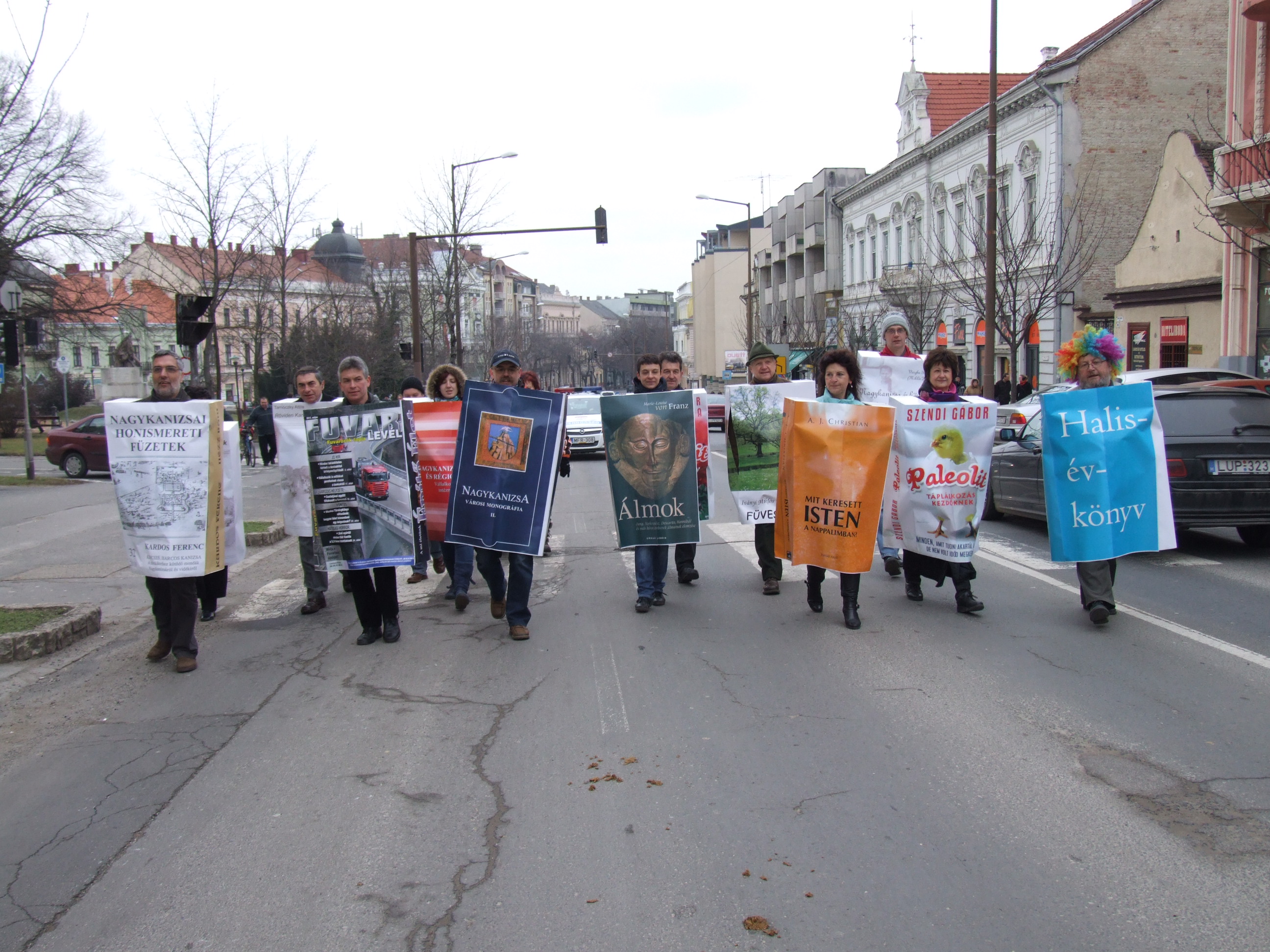 Nyilvános 933 | 1277 | 2013. február 9. A farsangi fánkfesztiválra készülve felhívásban kértük olvasóinkat, hogy öltsék magukra kedves könyvüket. Egy „könyvespolcnyi” jelentkező vette magára kedves olvasmányát, az ő vonulásukról készültek ezek a képek. A környezetükben néhol láthatók a Nagykanizsai Gólyalábasok, akik szintén a könyvtárhoz kötődnek. A „felvonuló kötetek” a könyvtár épületében még megtekinthetők. | |