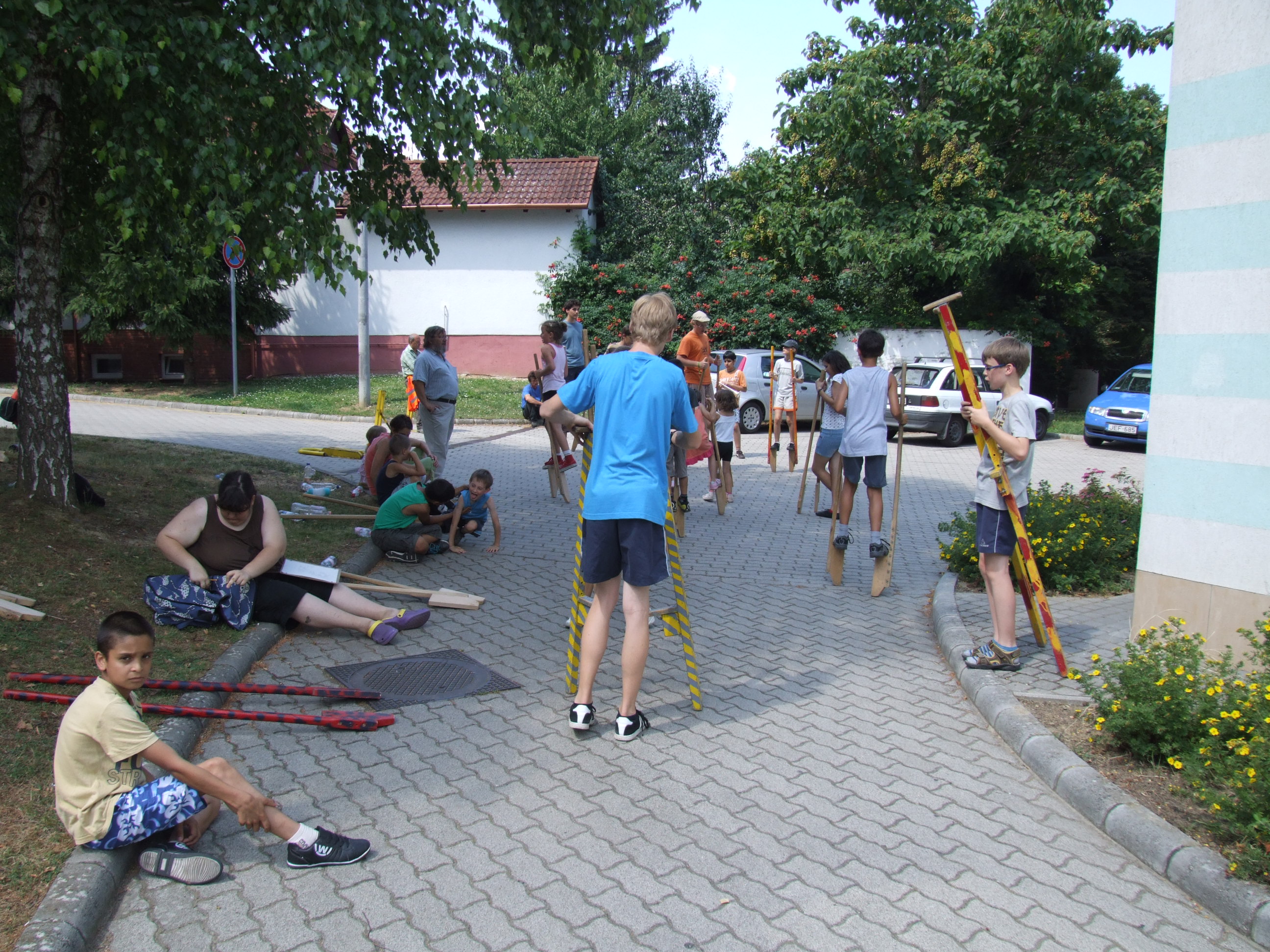 2013.07.10. Olvasótáborosok és piaristák gólyalábaznak 01.JPG