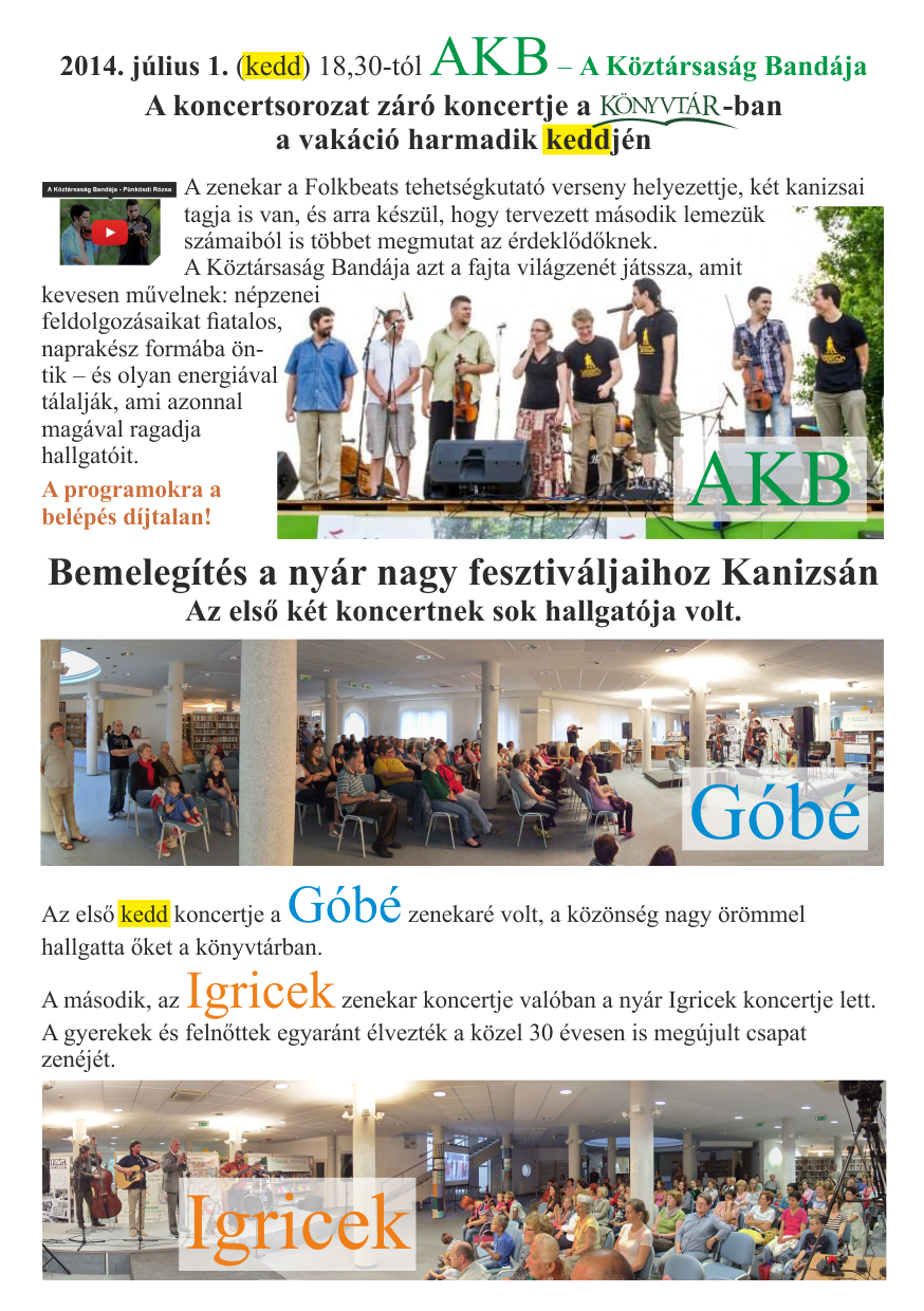Bemelegítés a nyár nagy fesztiváljaihoz Kanizsán Megkí ... | 350.28 KB | 2014-06-11 15:26:00 | |||