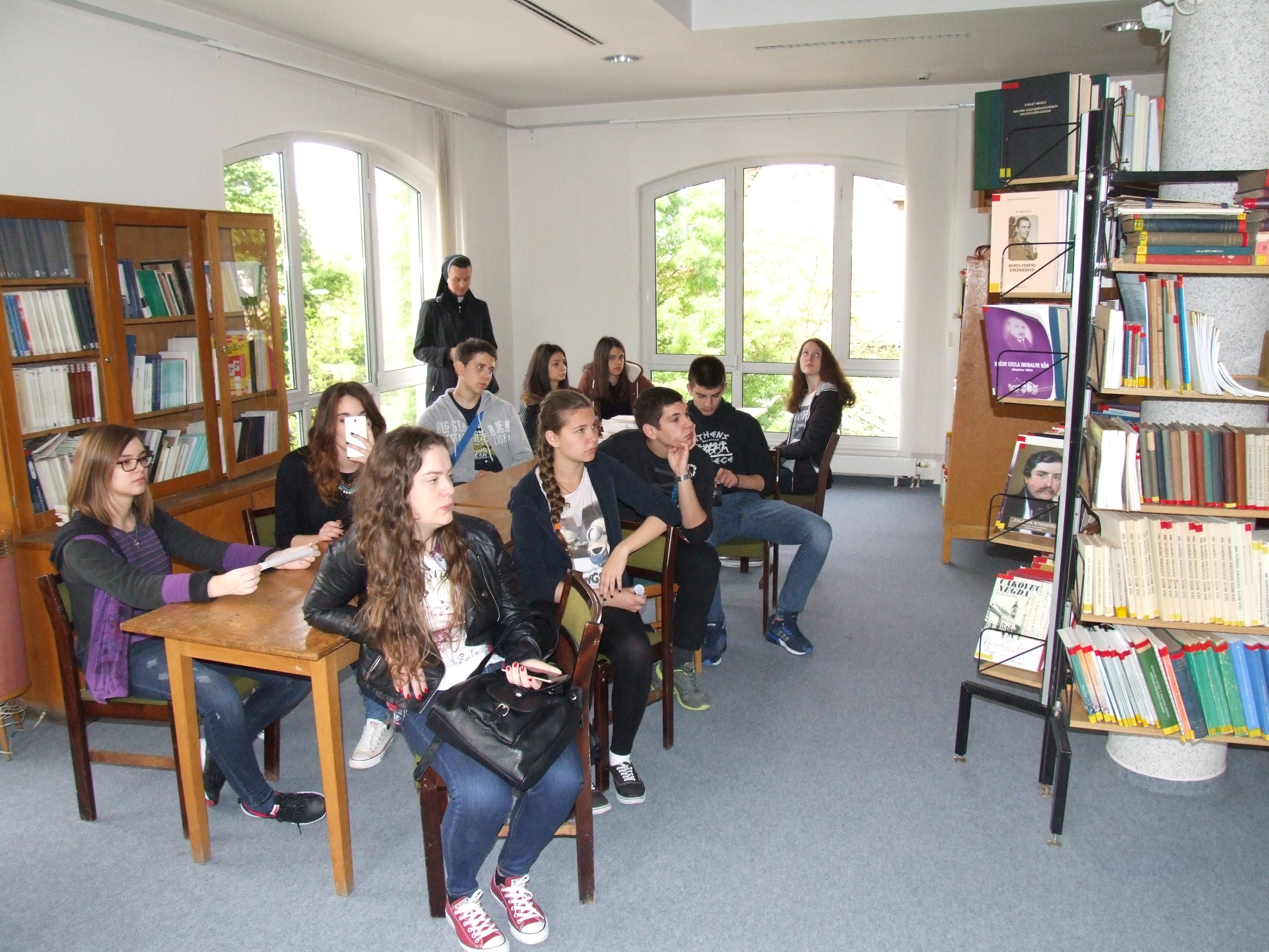 2016.04.18. Horvát látogatók és horvátul tanuló piaristák a könyvtárban