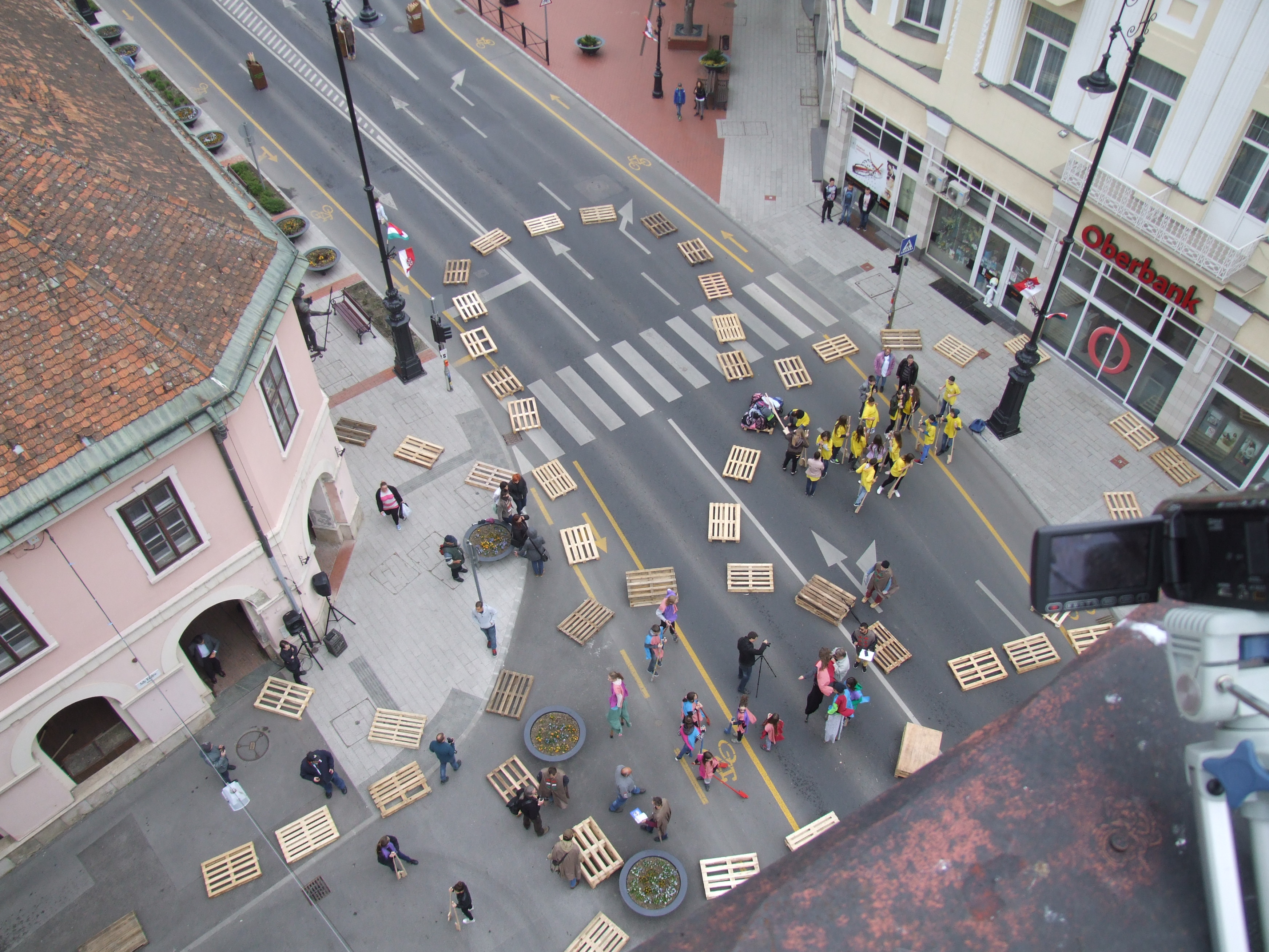 2017.04.27. Tömeges gólyalábra állás a Fő út - Ady u. kereszteződésében