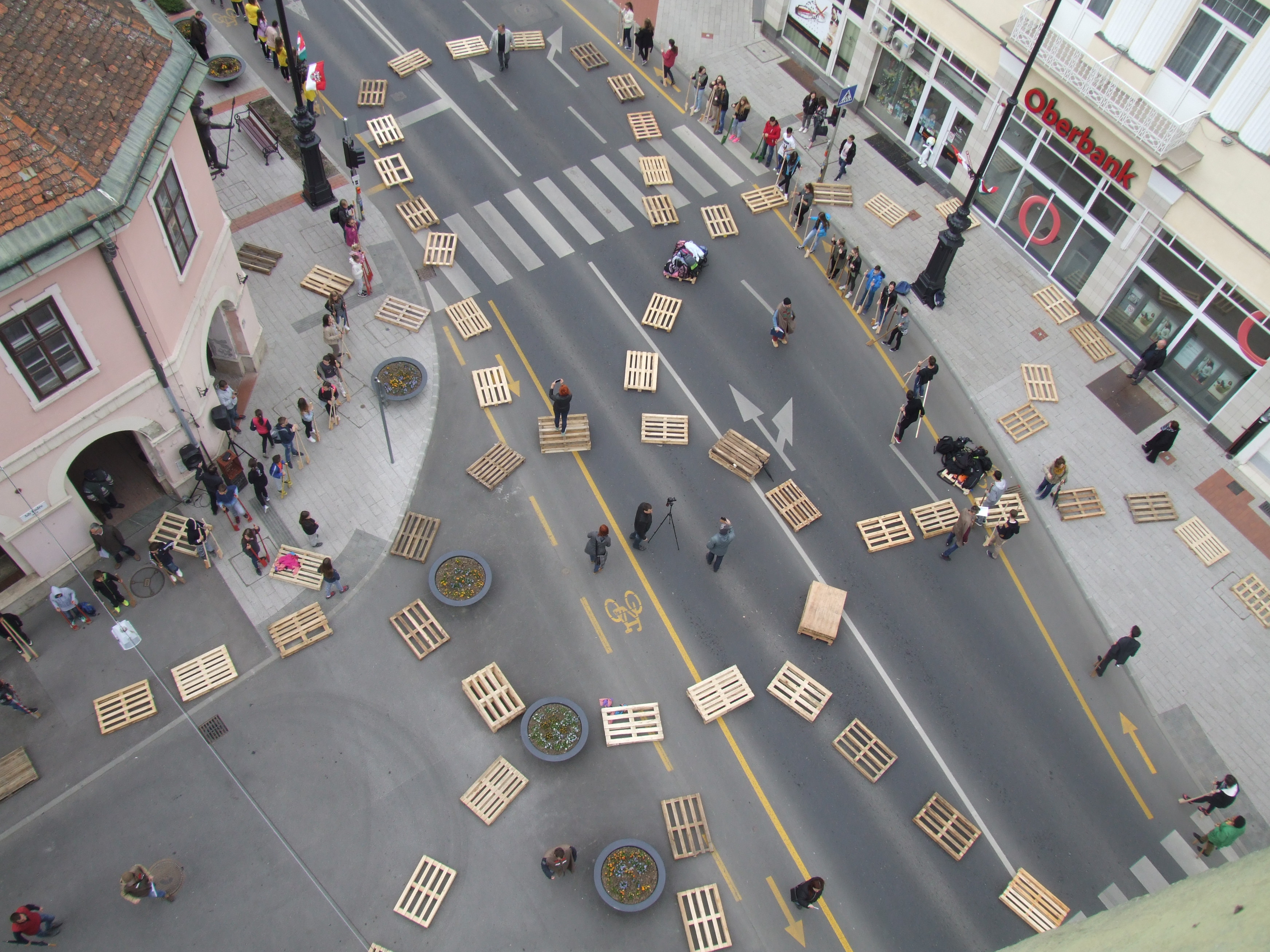 2017.04.27. Tömeges gólyalábra állás a Fő út - Ady u. kereszteződésében