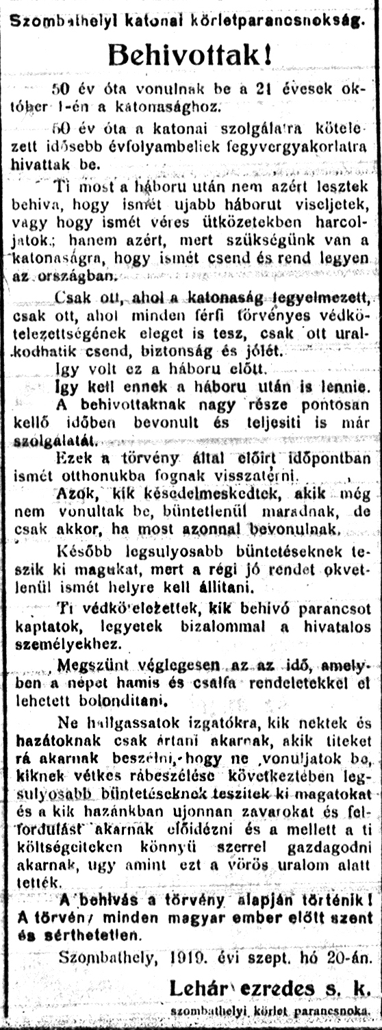 Lehár ezredes - Zala 1919